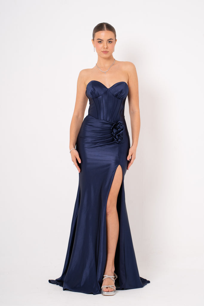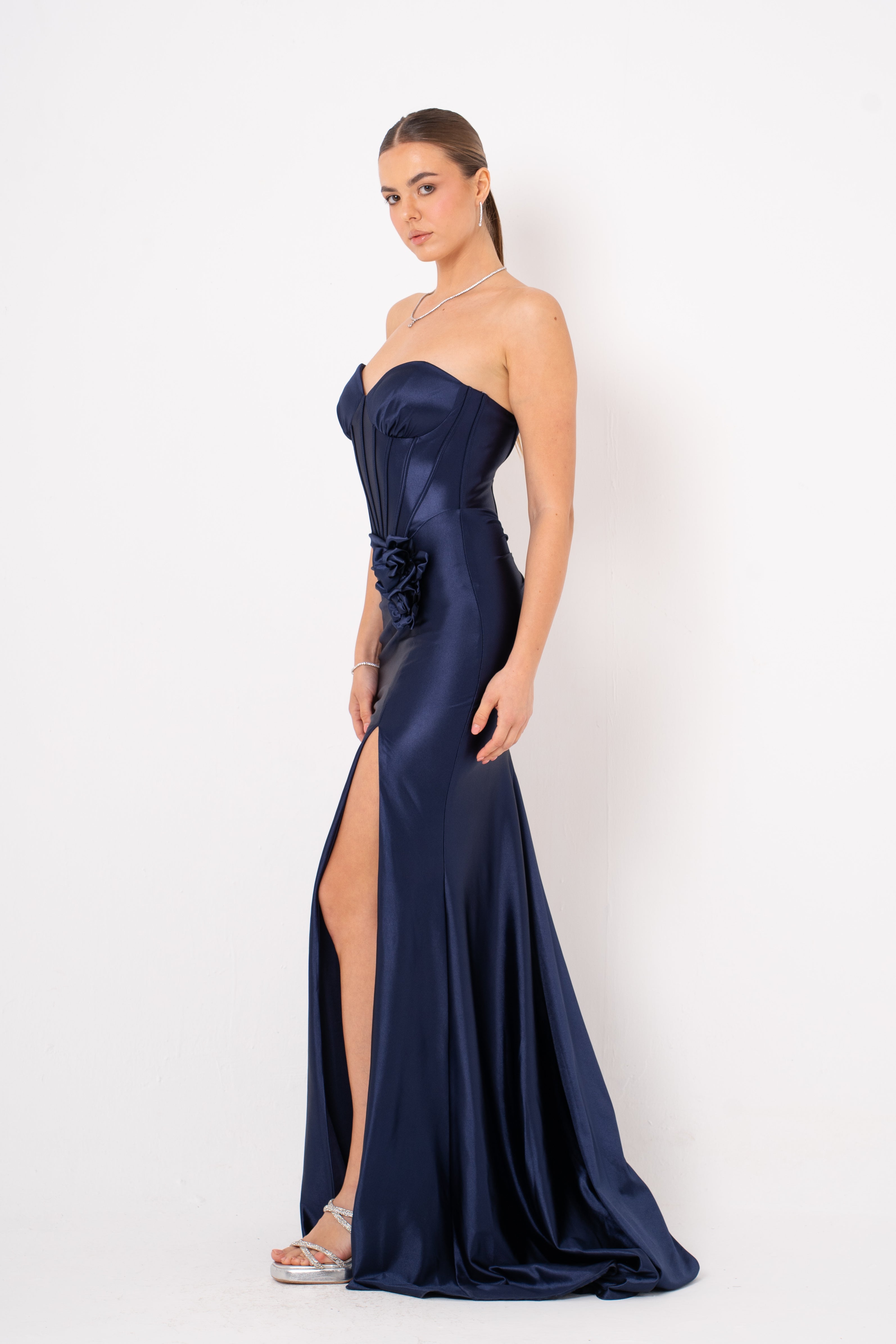 Introducing Abigail—the dress that steals the spotlight without breaking a sweat. This strapless satin maxi glides effortlessly from shoulder to floor, with a daring high slit that lets you move with confidence and flair. The luxurious satin fabric catches the light beautifully, giving you that red-carpet glow at any evening event. Whether you're dancing the night away or making a grand entrance, Abigail delivers elegance with a cheeky wink. Pure sophistication, zero compromises.