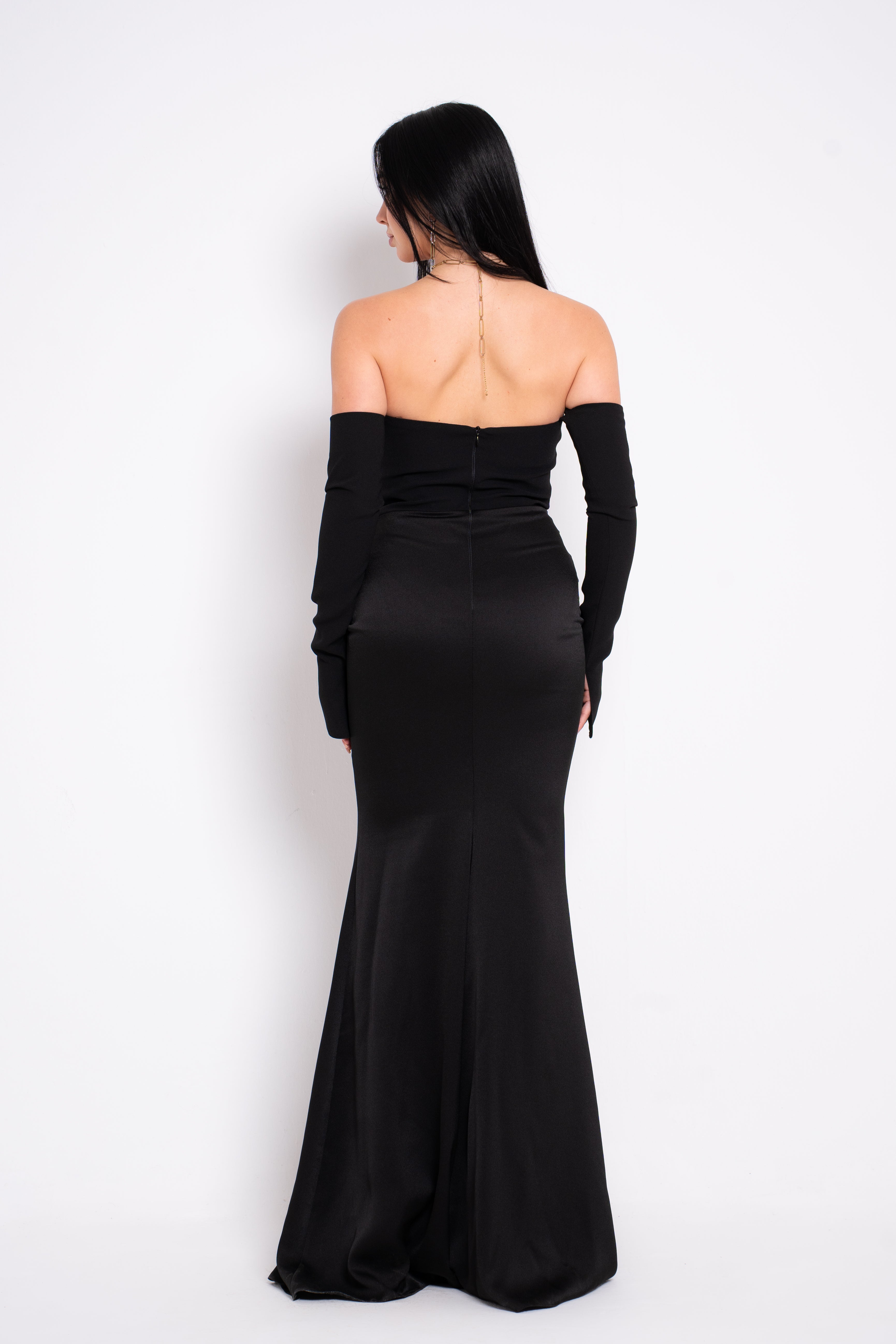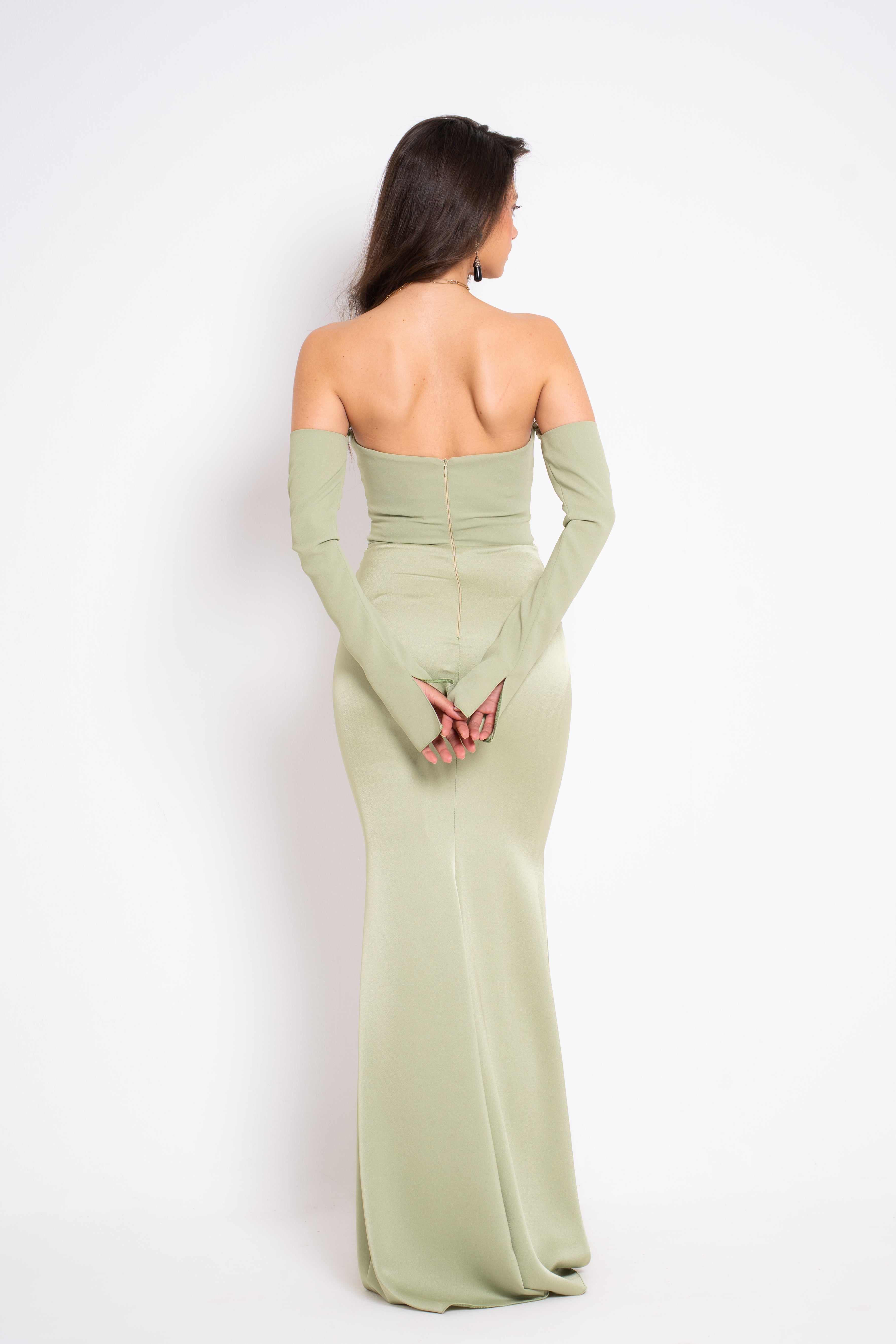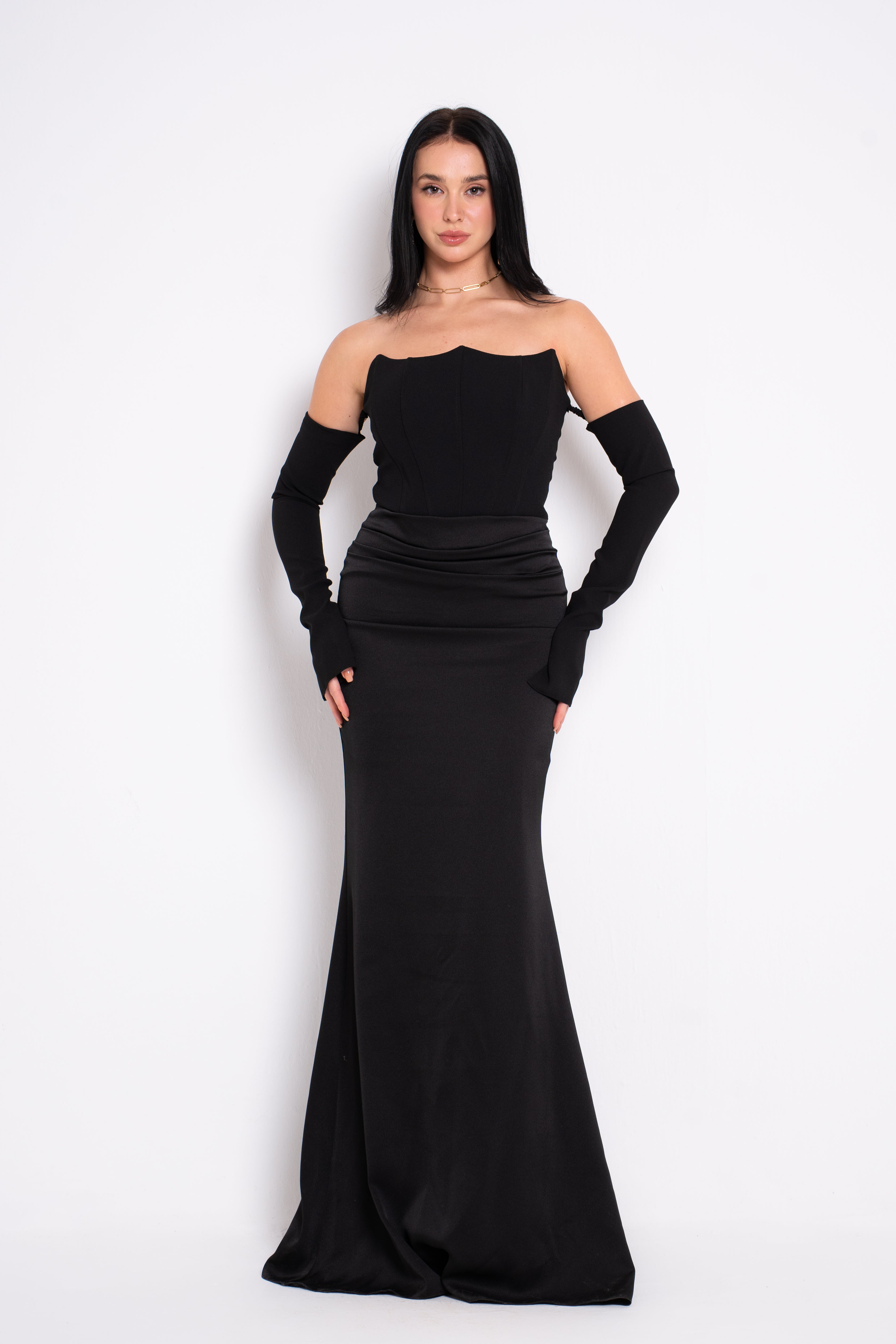 Meet Alessia, the dress that lets you have it all. This stunning strapless maxi glides effortlessly from shoulder to floor with an elegant silhouette, while detachable sleeves add instant versatility—wear them for drama or go bare for pure sophistication. Perfect for those moments when you want to command attention without saying a word. Transform your look in seconds and own every room you enter.