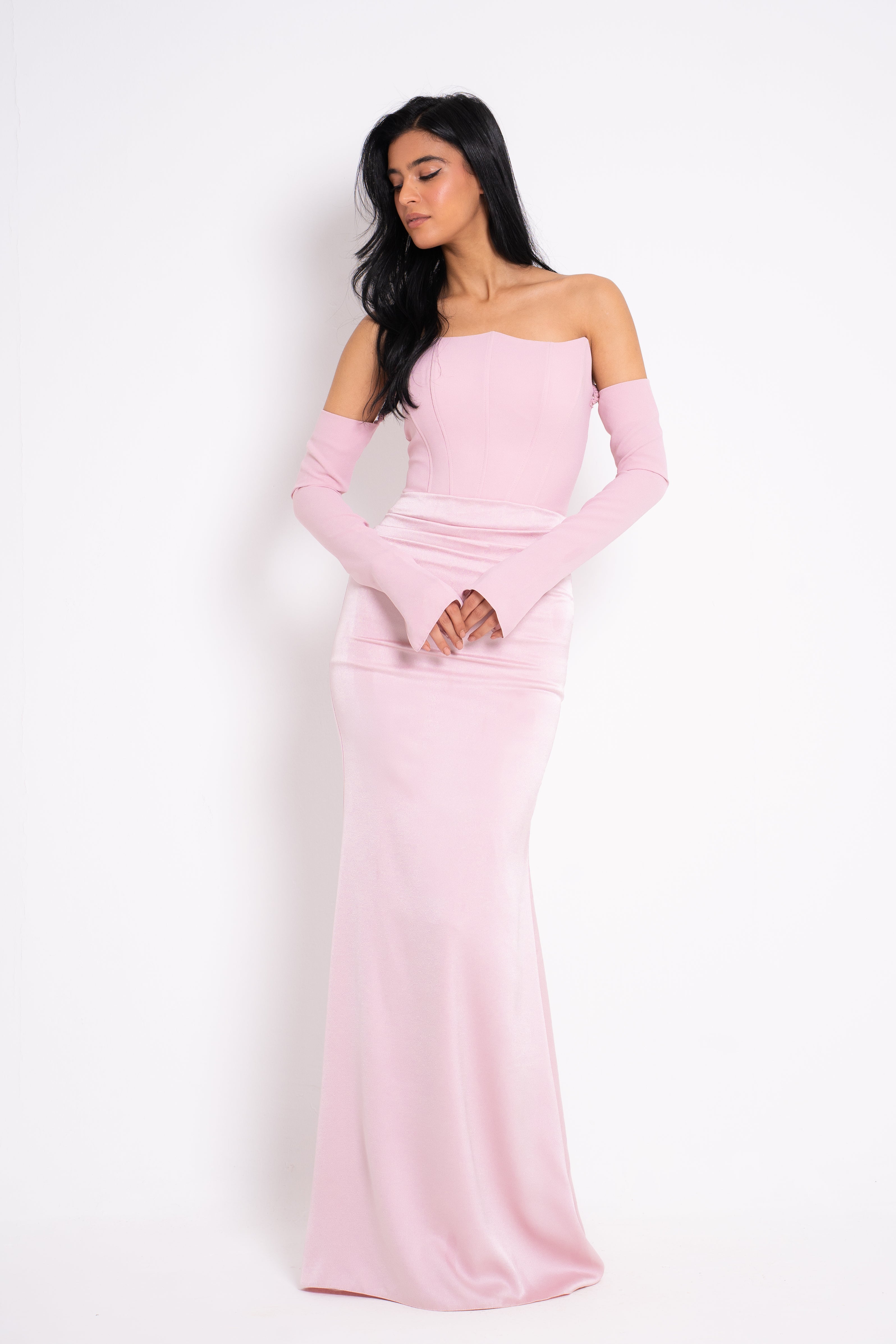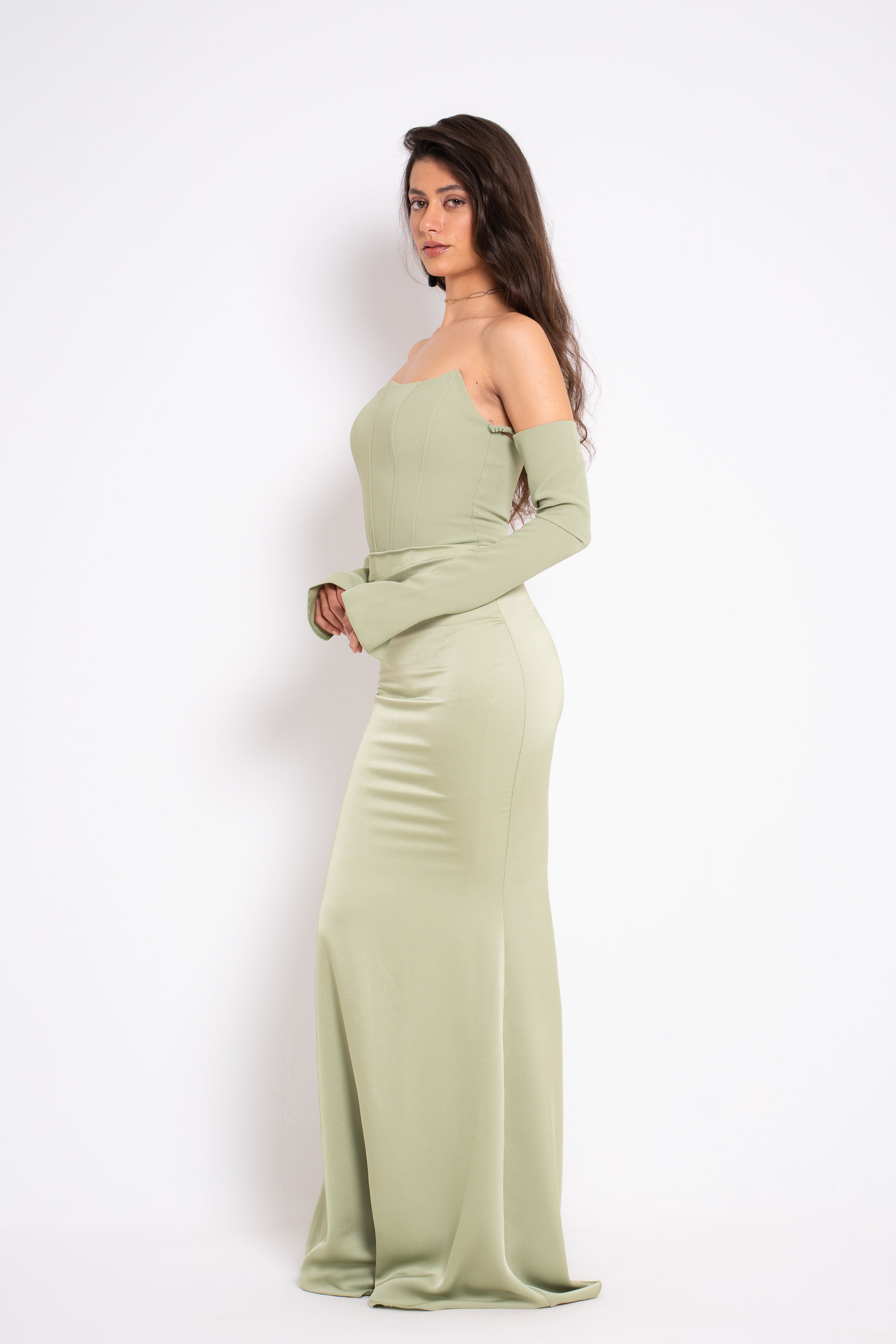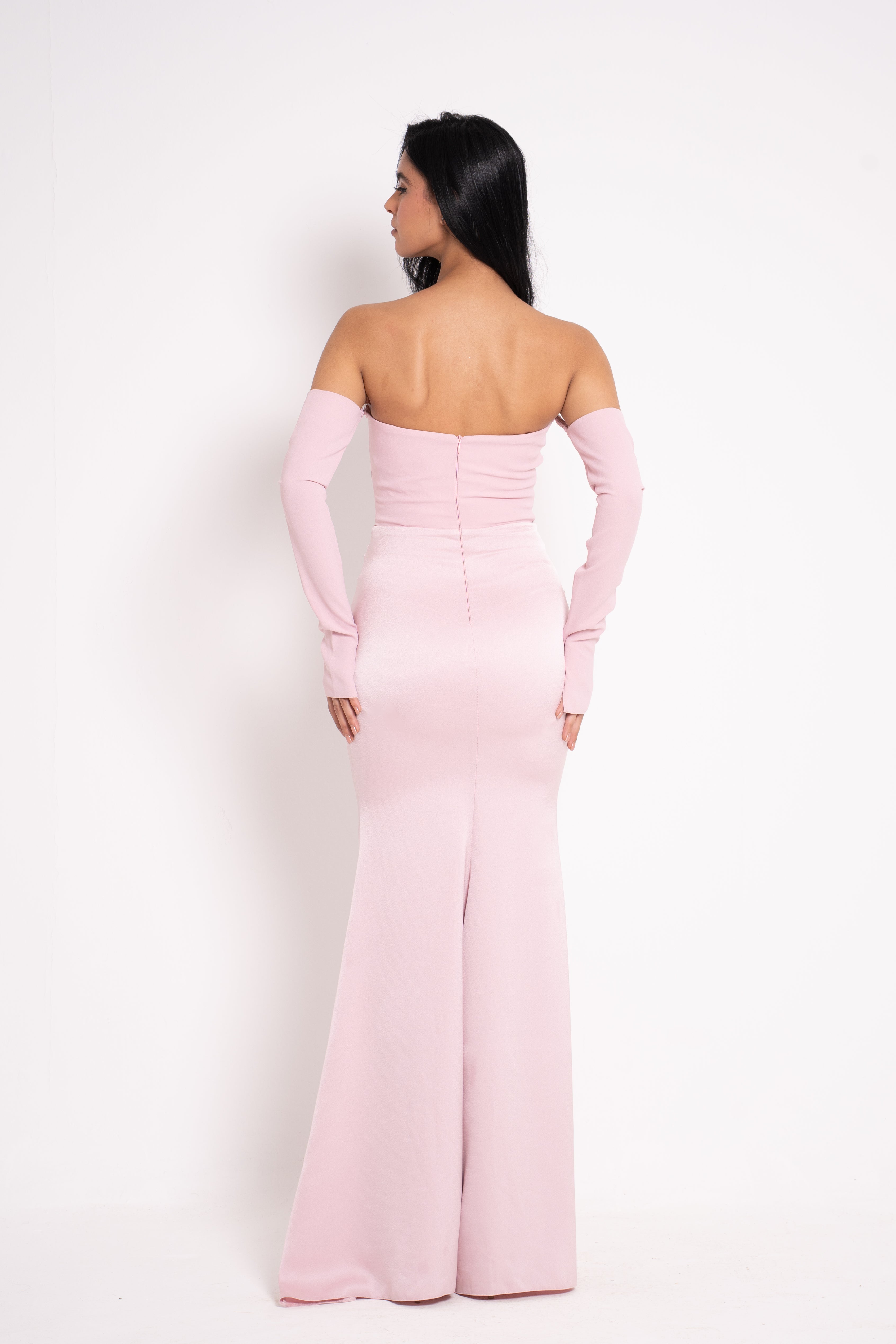 Meet Alessia, the dress that lets you have it all. This stunning strapless maxi glides effortlessly from shoulder to floor with an elegant silhouette, while detachable sleeves add instant versatility—wear them for drama or go bare for pure sophistication. Perfect for those moments when you want to command attention without saying a word. Transform your look in seconds and own every room you enter.