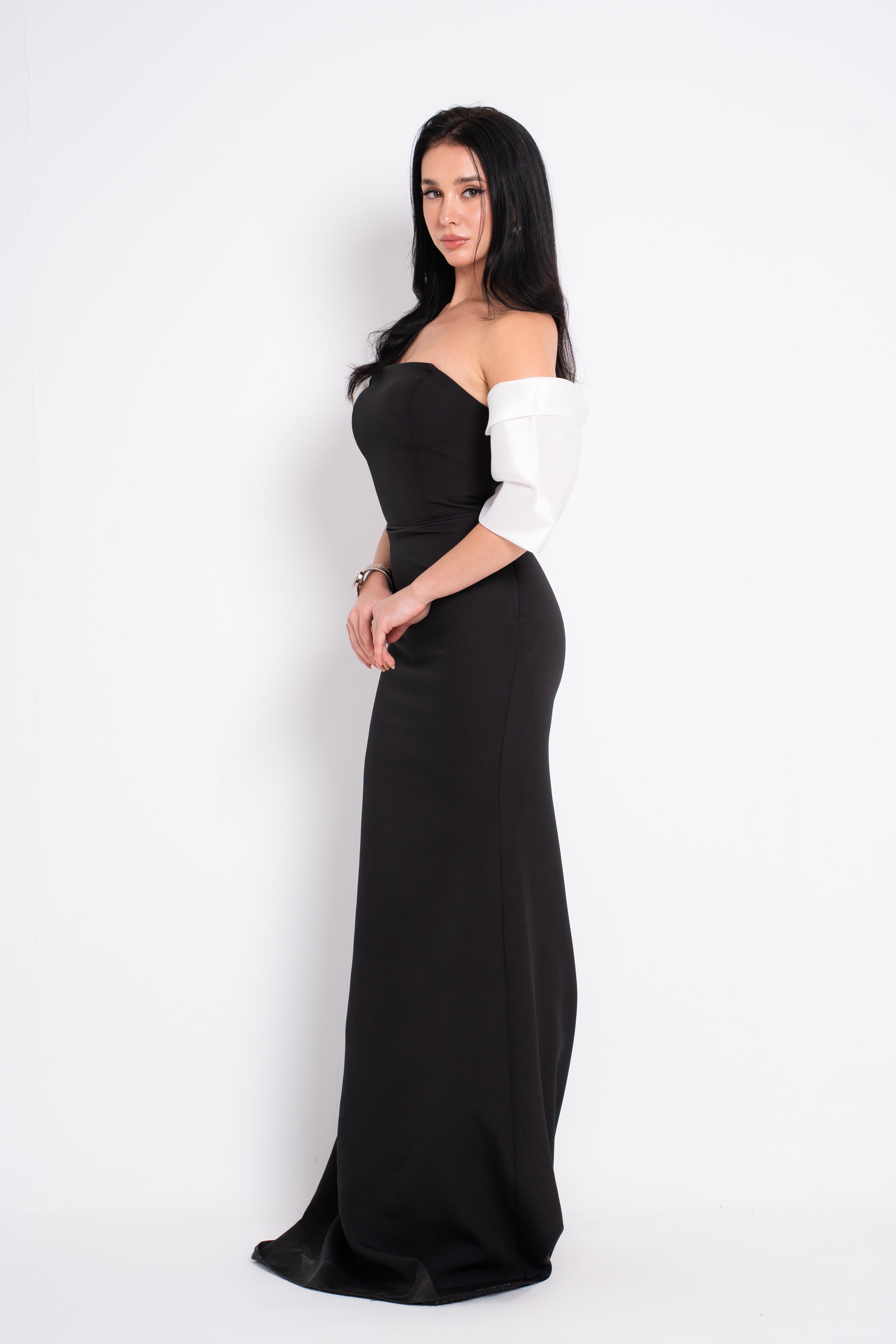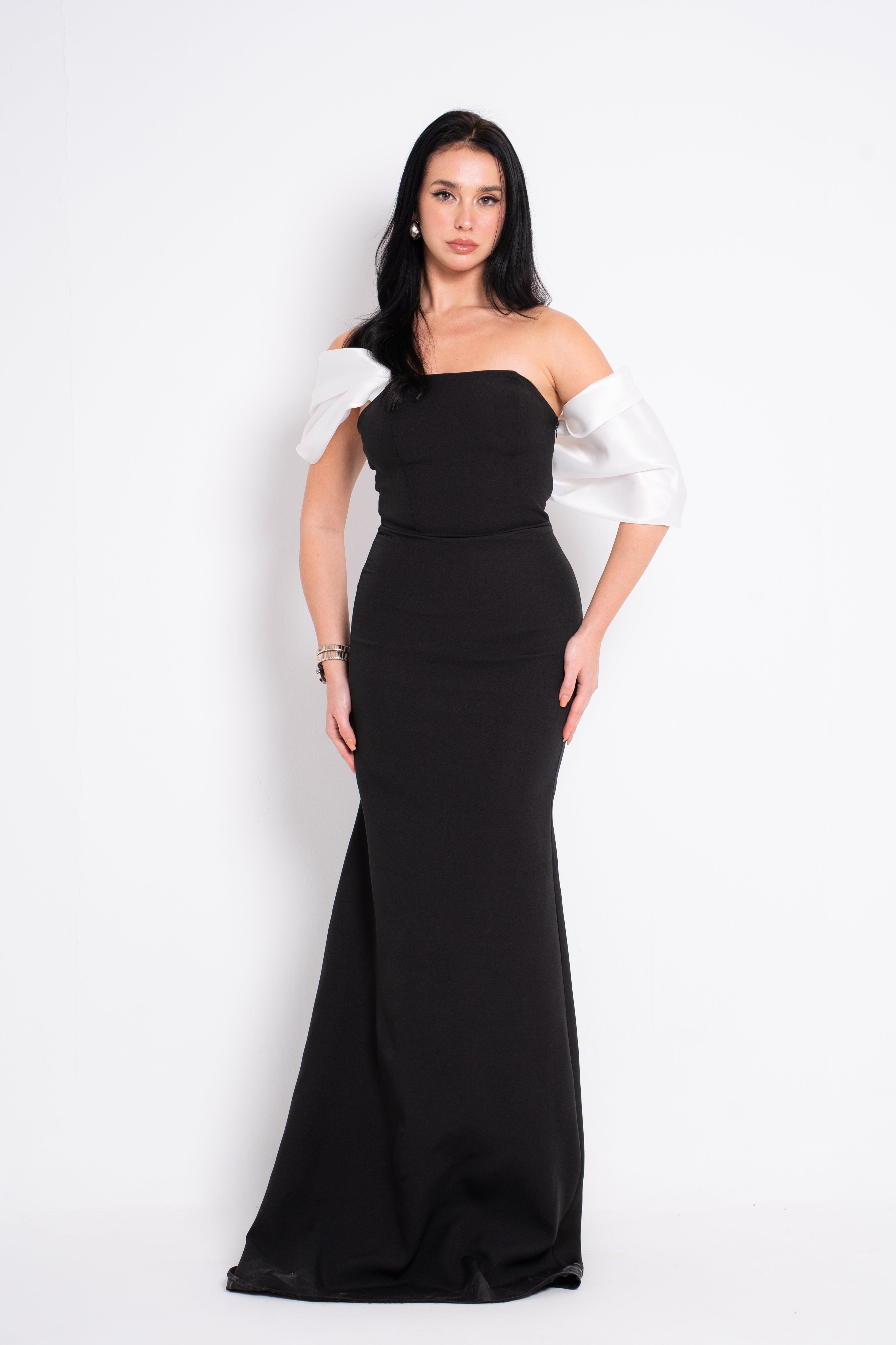 Slip into elegance with Azure, an off-shoulder maxi evening dress that's equal parts sophisticated and fun. The flowing silhouette skims gracefully to the floor, while the bardot neckline frames your shoulders beautifully. Perfect for those moments when you want to feel like the best version of yourself—whether you're dancing the night away or making a grand entrance. Timeless style meets modern flair in this wardrobe essential.