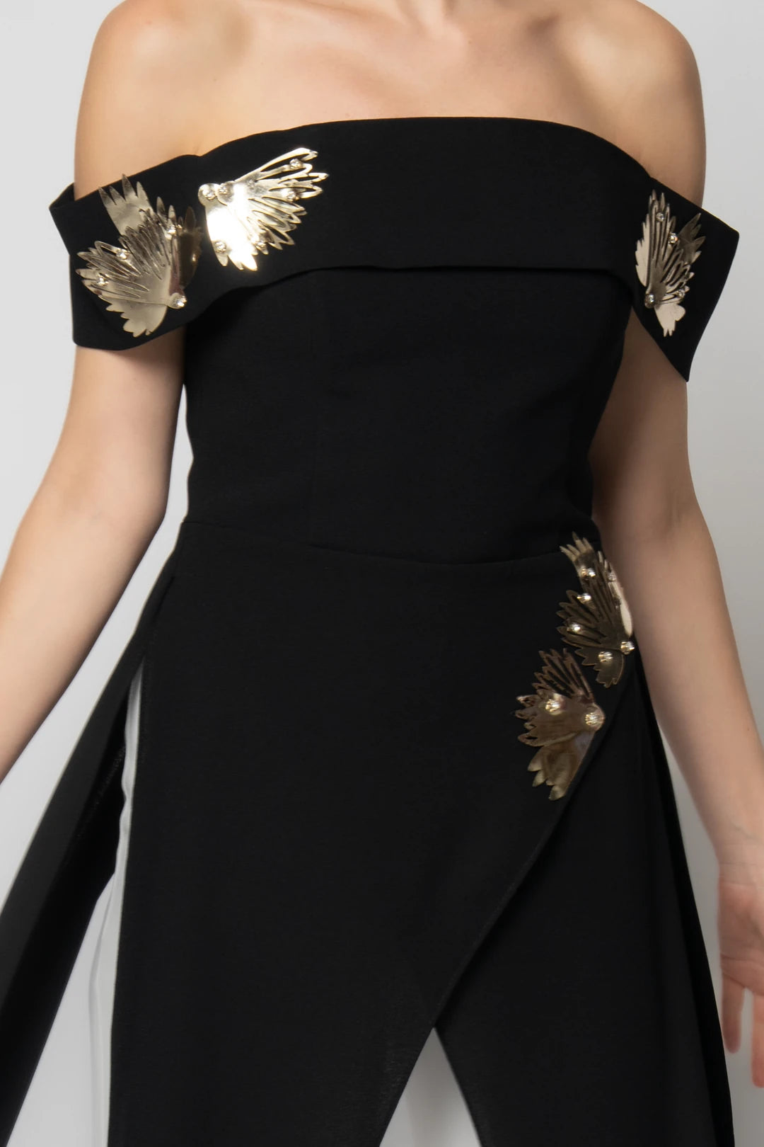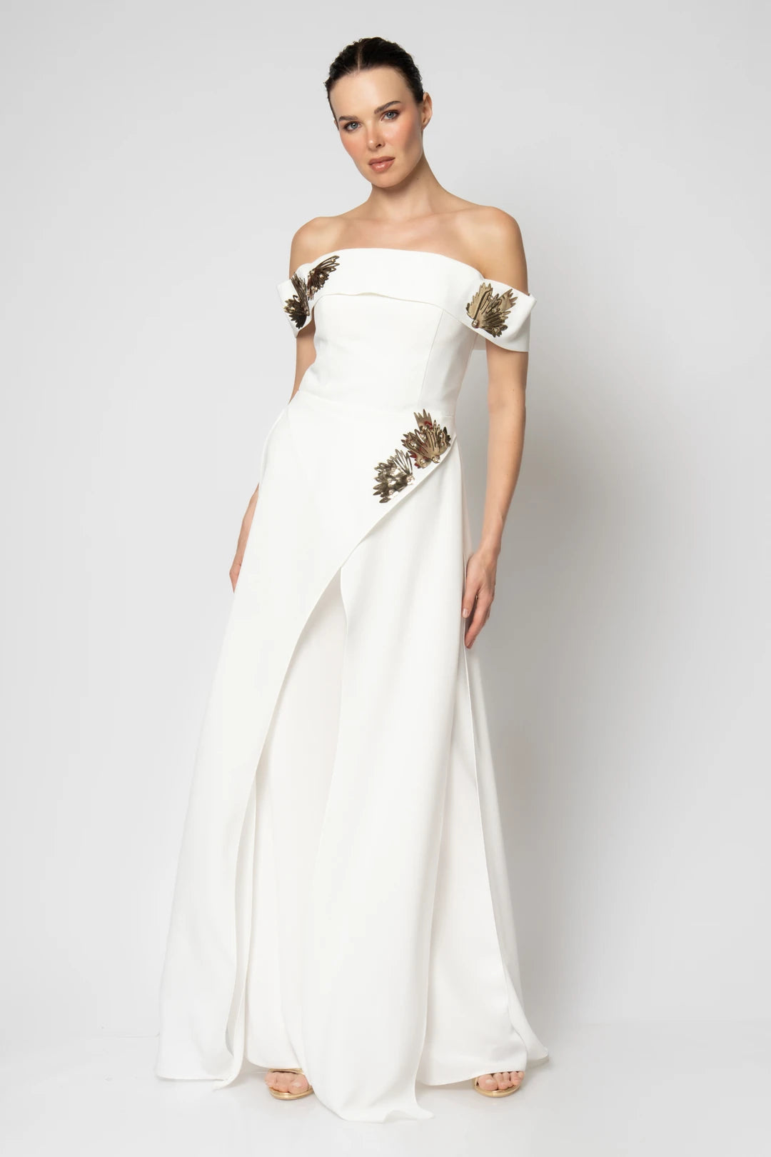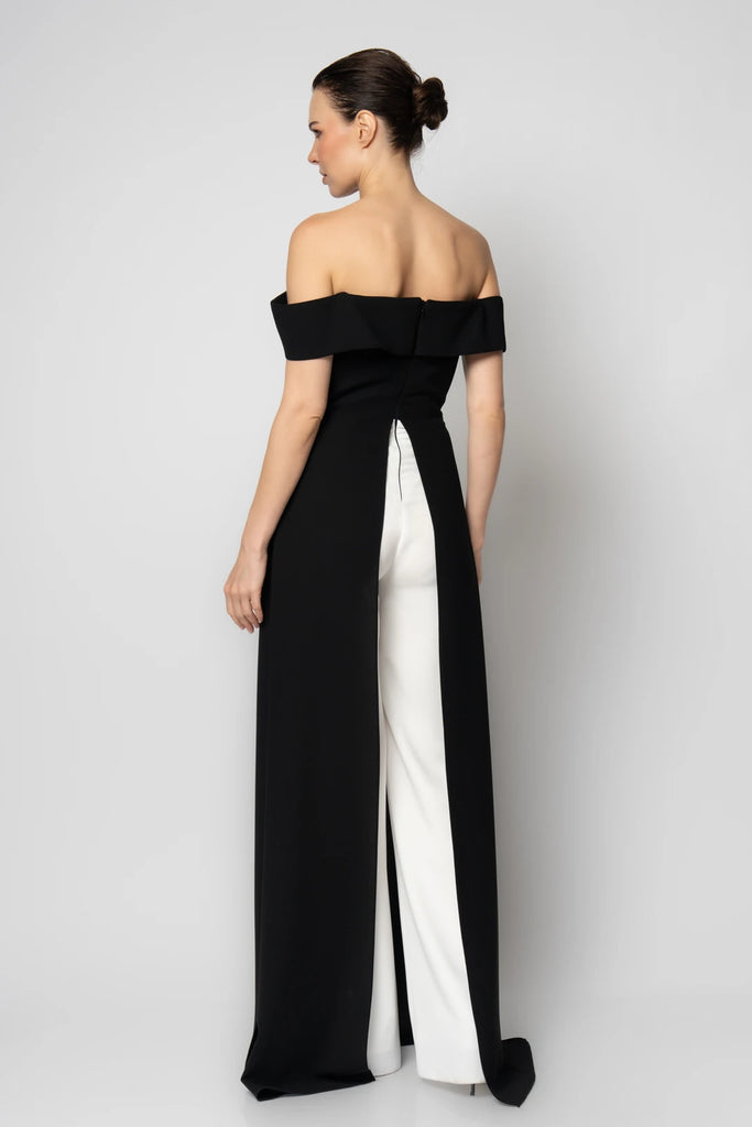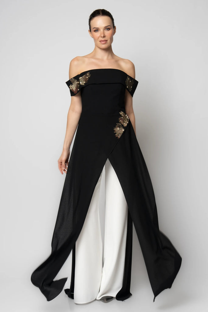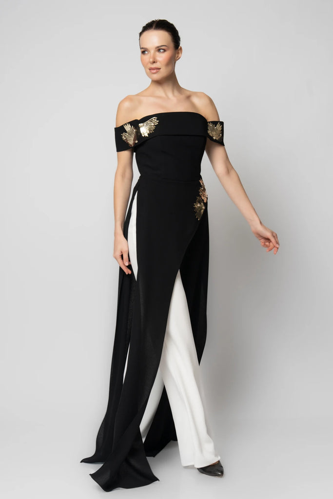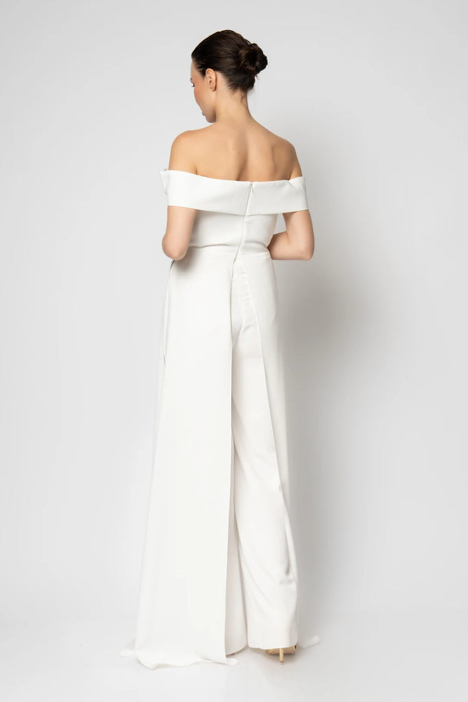 Elevate your evening look with the Calandra off-shoulder jumpsuit, designed to combine elegance and modern style. Its graceful off-shoulder neckline highlights your silhouette while offering effortless sophistication. Perfect for special occasions, this jumpsuit provides a chic, flattering fit that ensures you stand out with confidence and poise.