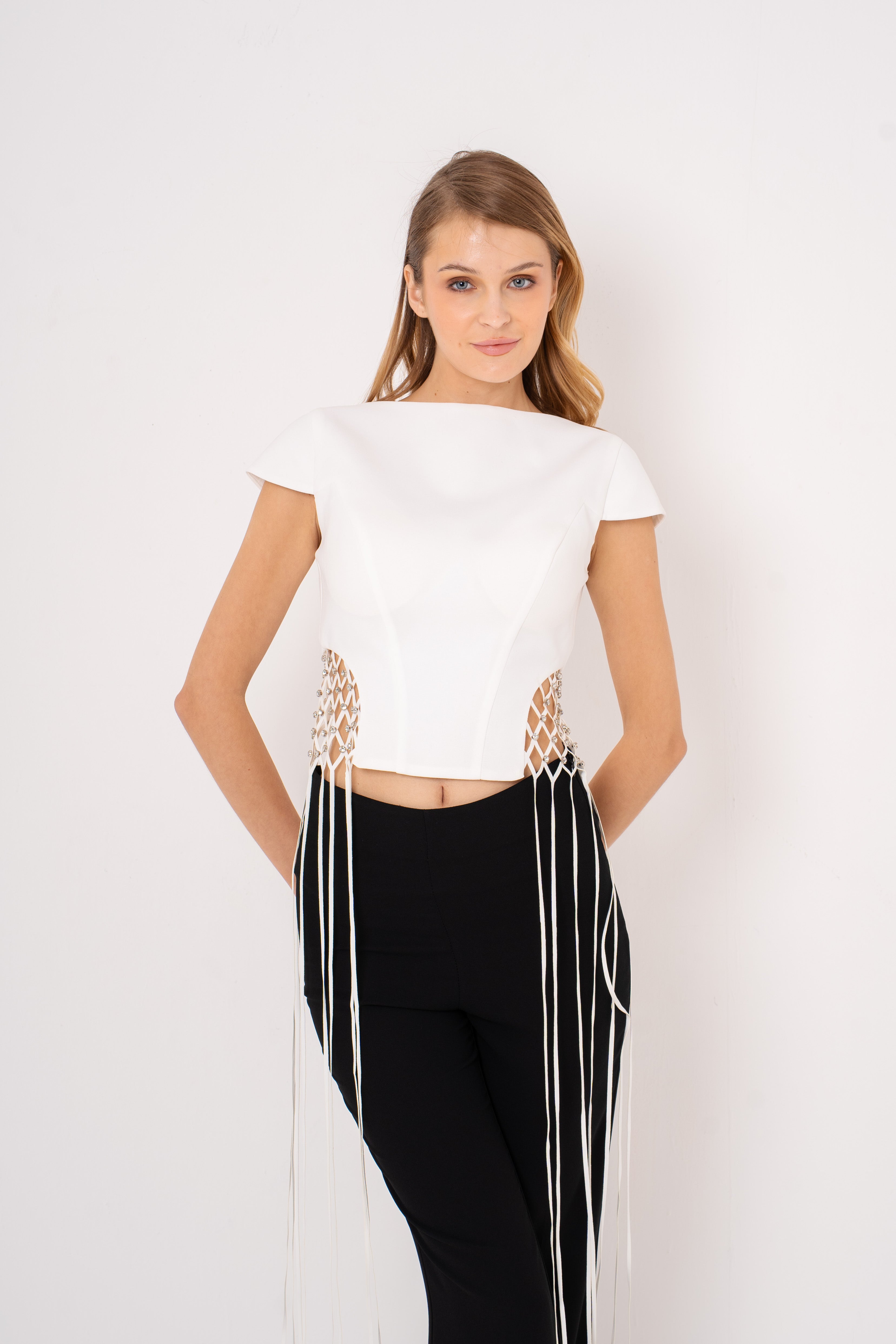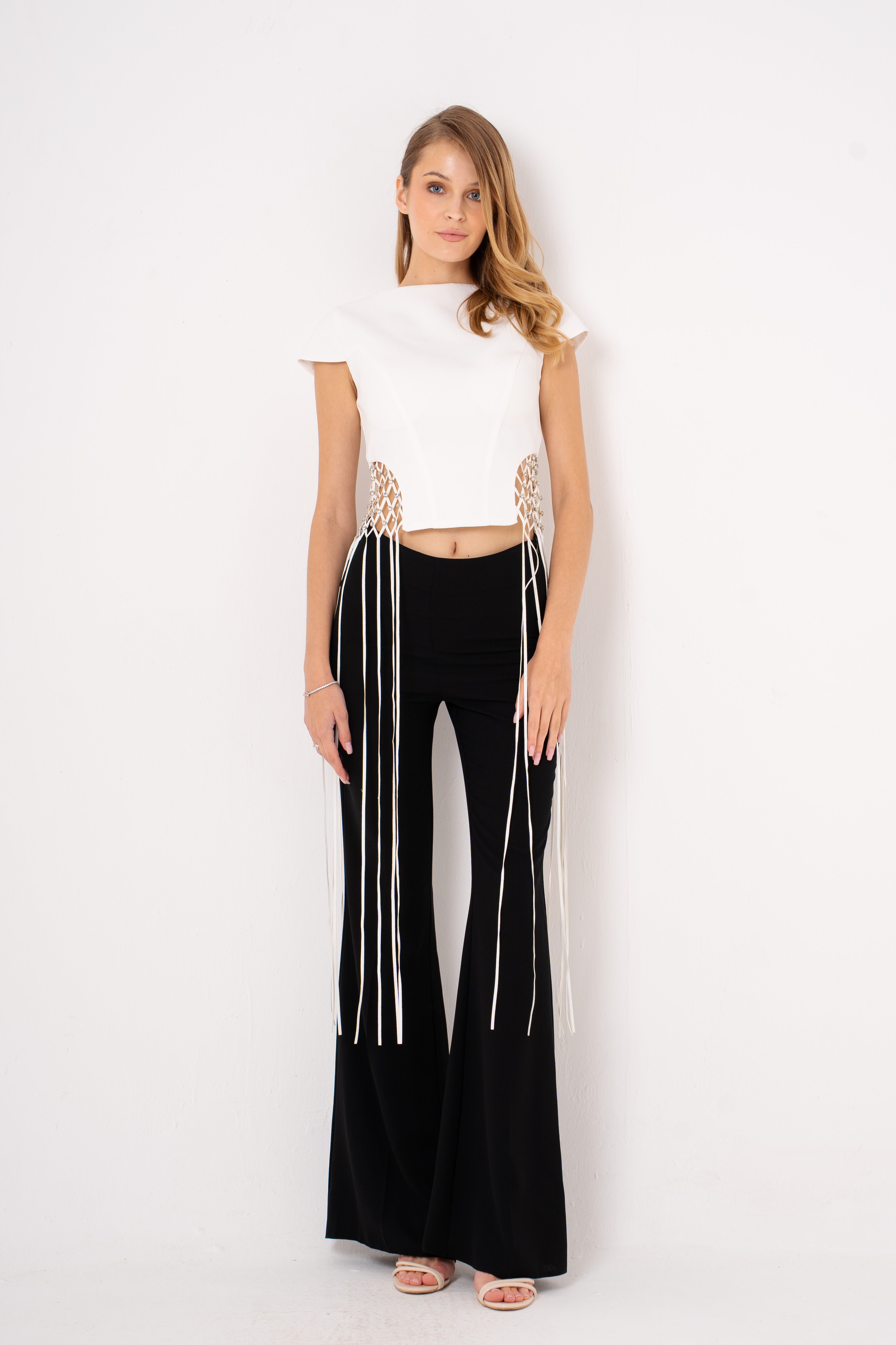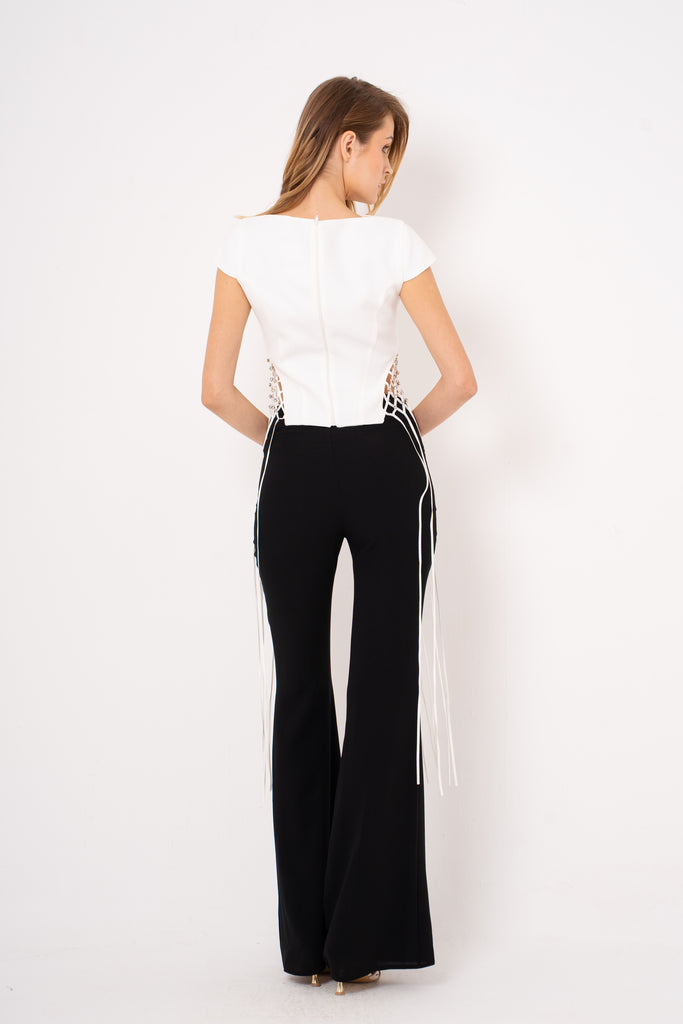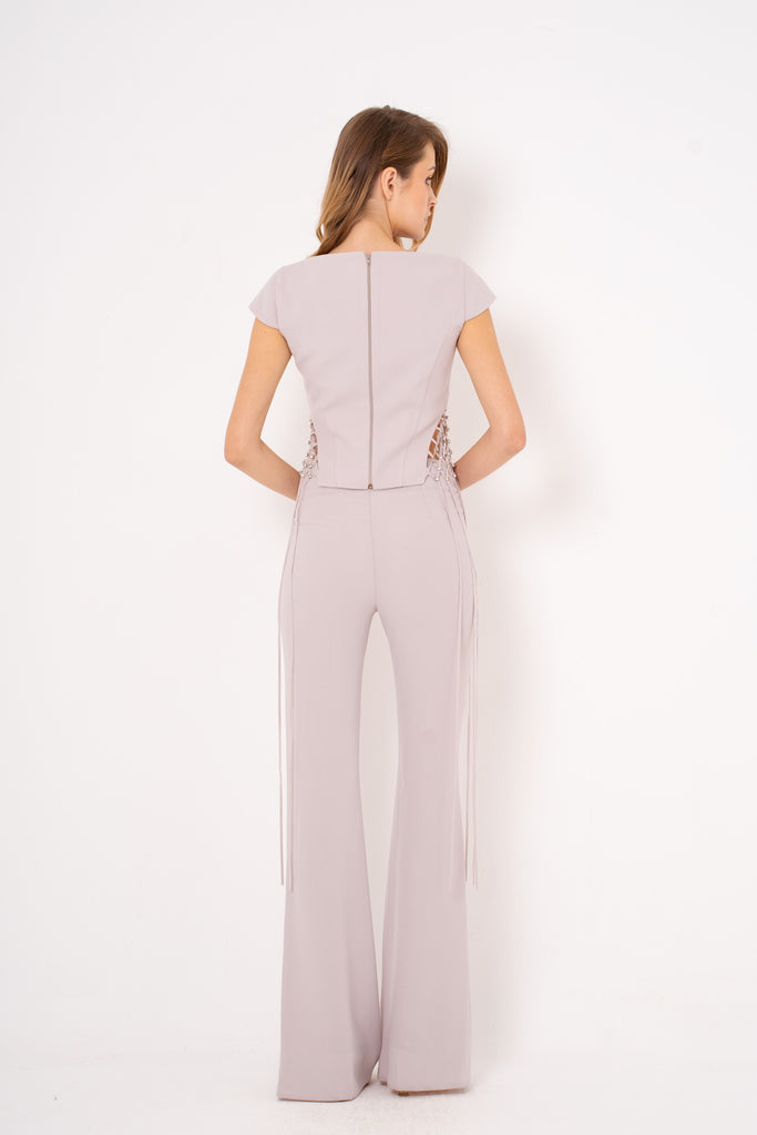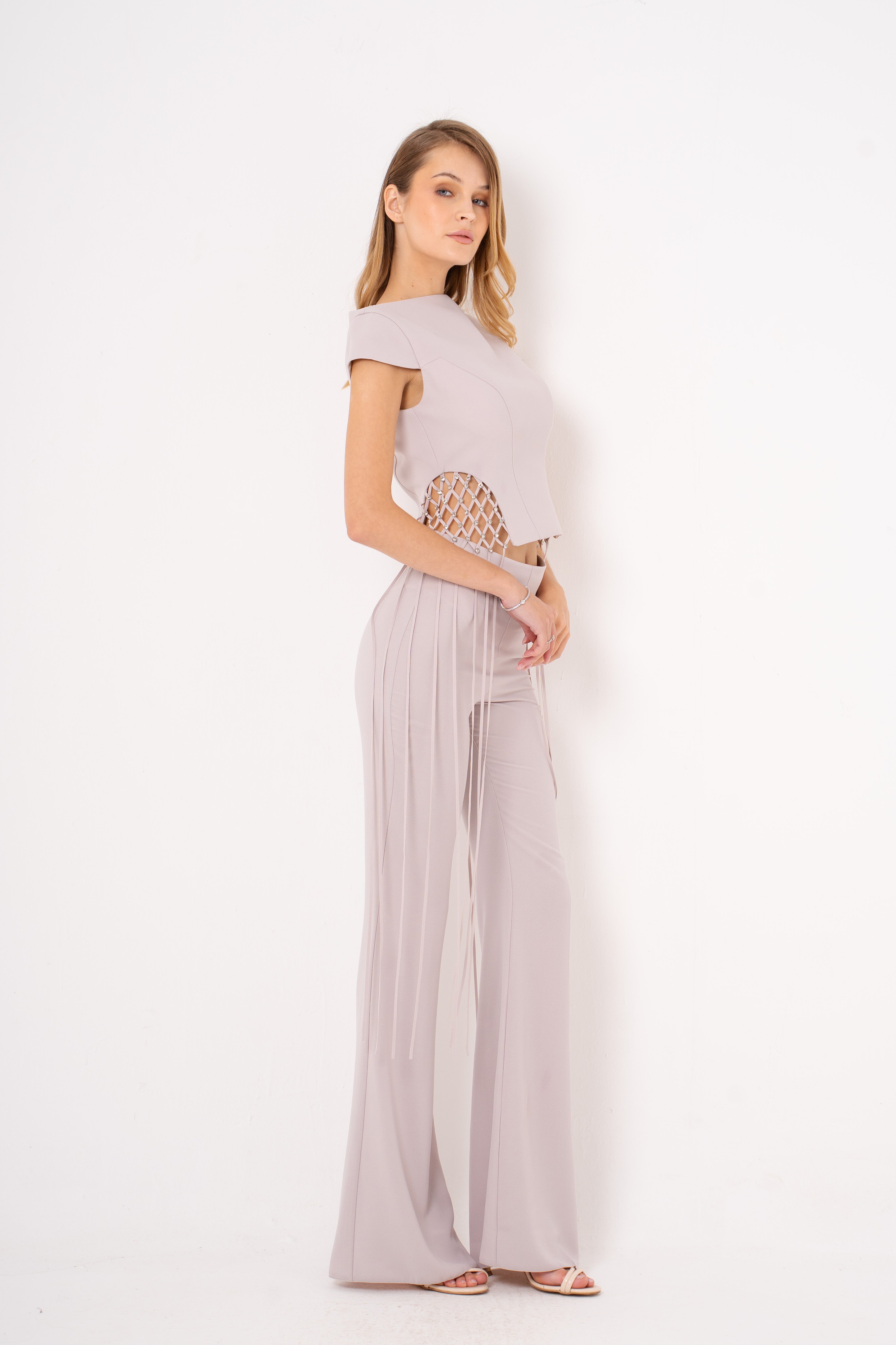Elevate your evening look with the Lauretta set—a chic pairing of tailored crop top and sleek suit pants that's ready for any sophisticated soirée. The crop top brings a modern, flirty edge while the perfectly fitted pants deliver polished elegance. Whether you're heading to a gala, dinner party, or night out, this dynamic duo transforms effortlessly from classic to contemporary. Mix, match, and make it yours—because looking fabulous should always be this fun.
