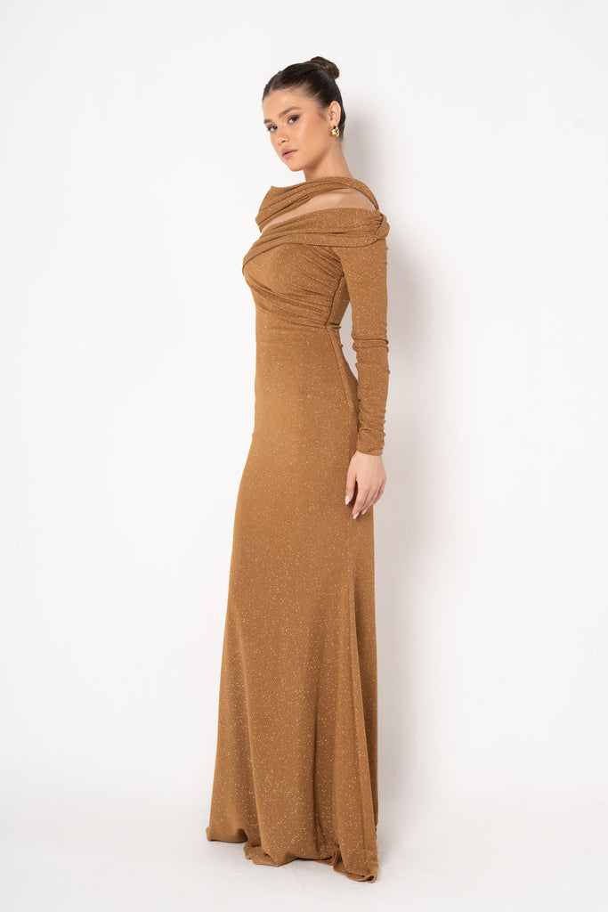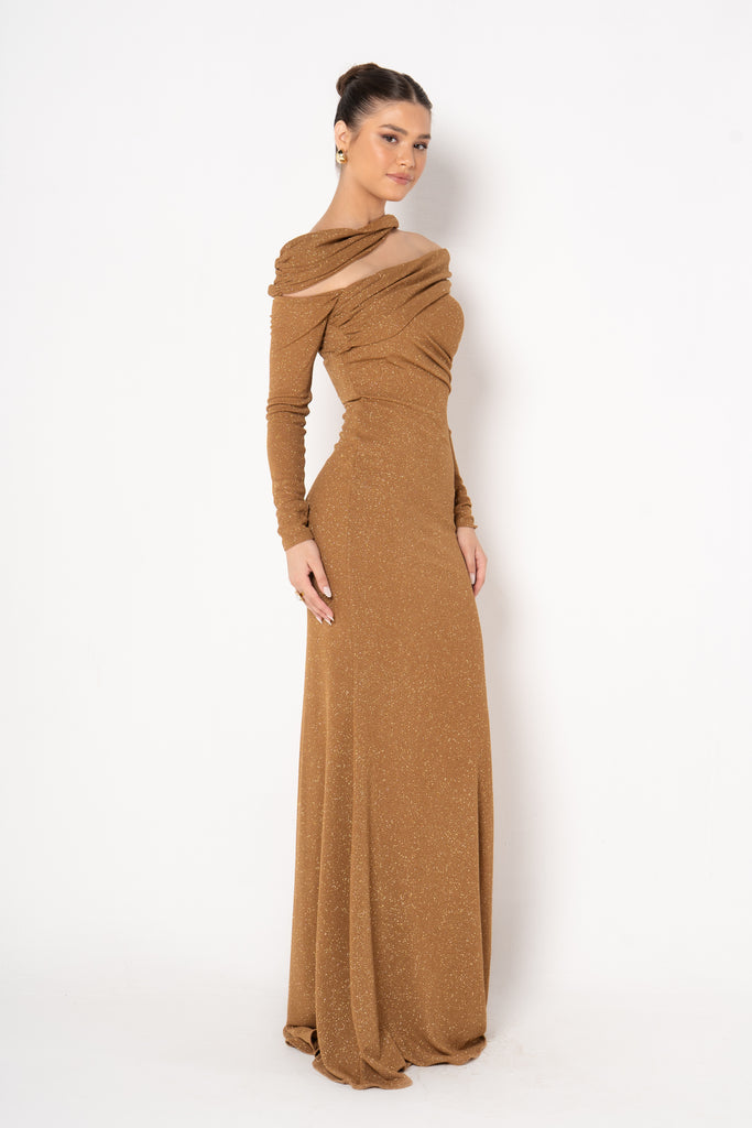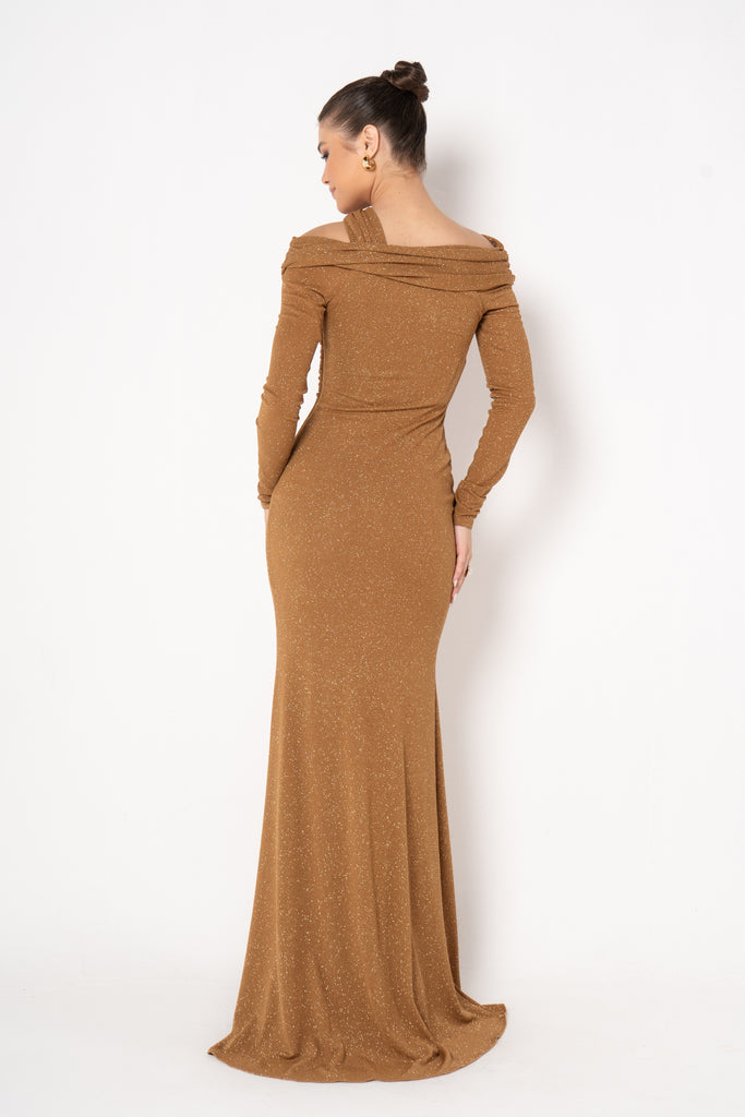 Introducing Breanna - the ultimate showstopper that combines elegance and playfulness. Featuring one shoulder and long sleeves, this maxi evening dress is perfect for making a statement at any formal event. And with its sequined material, you'll be sure to shine all night long.