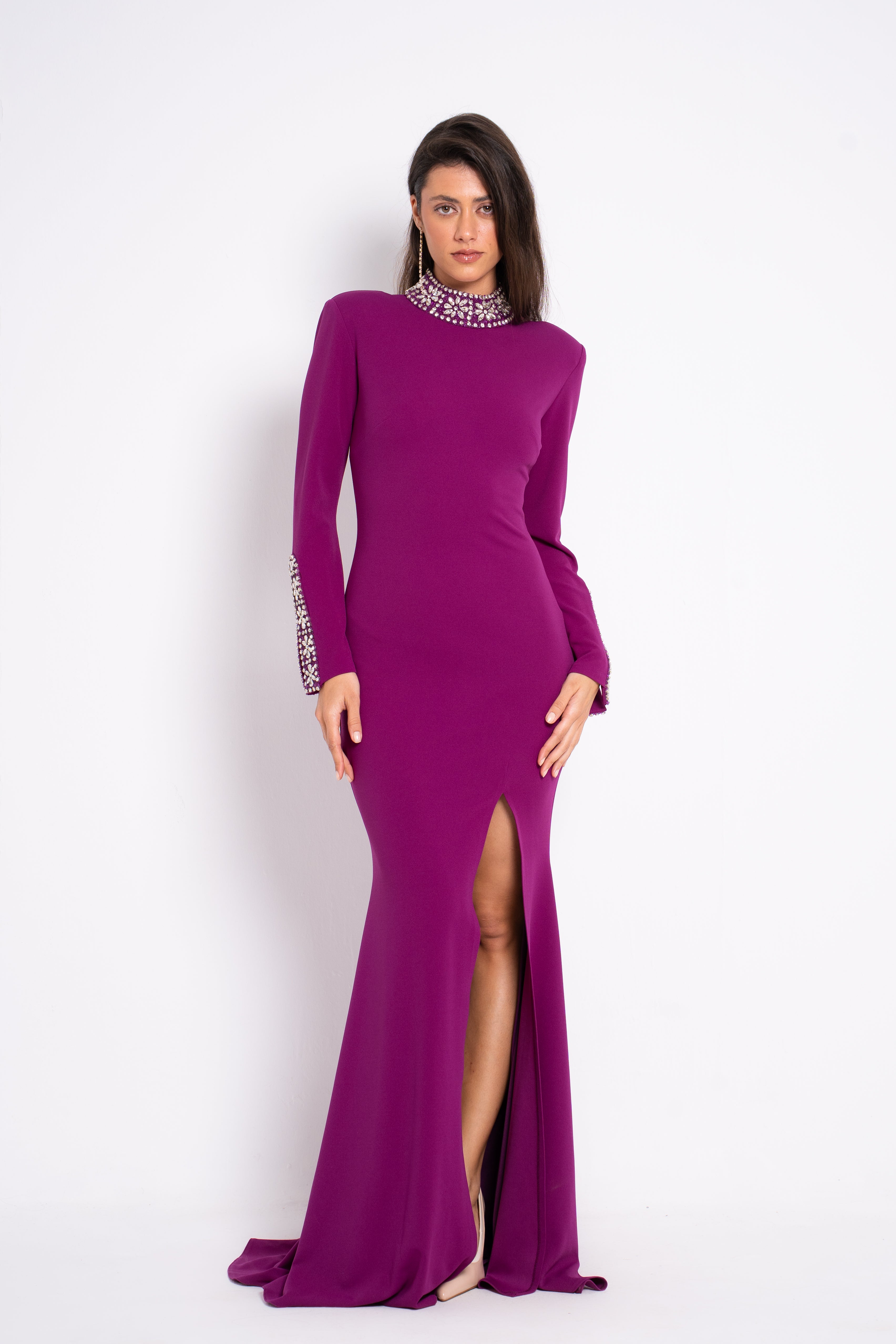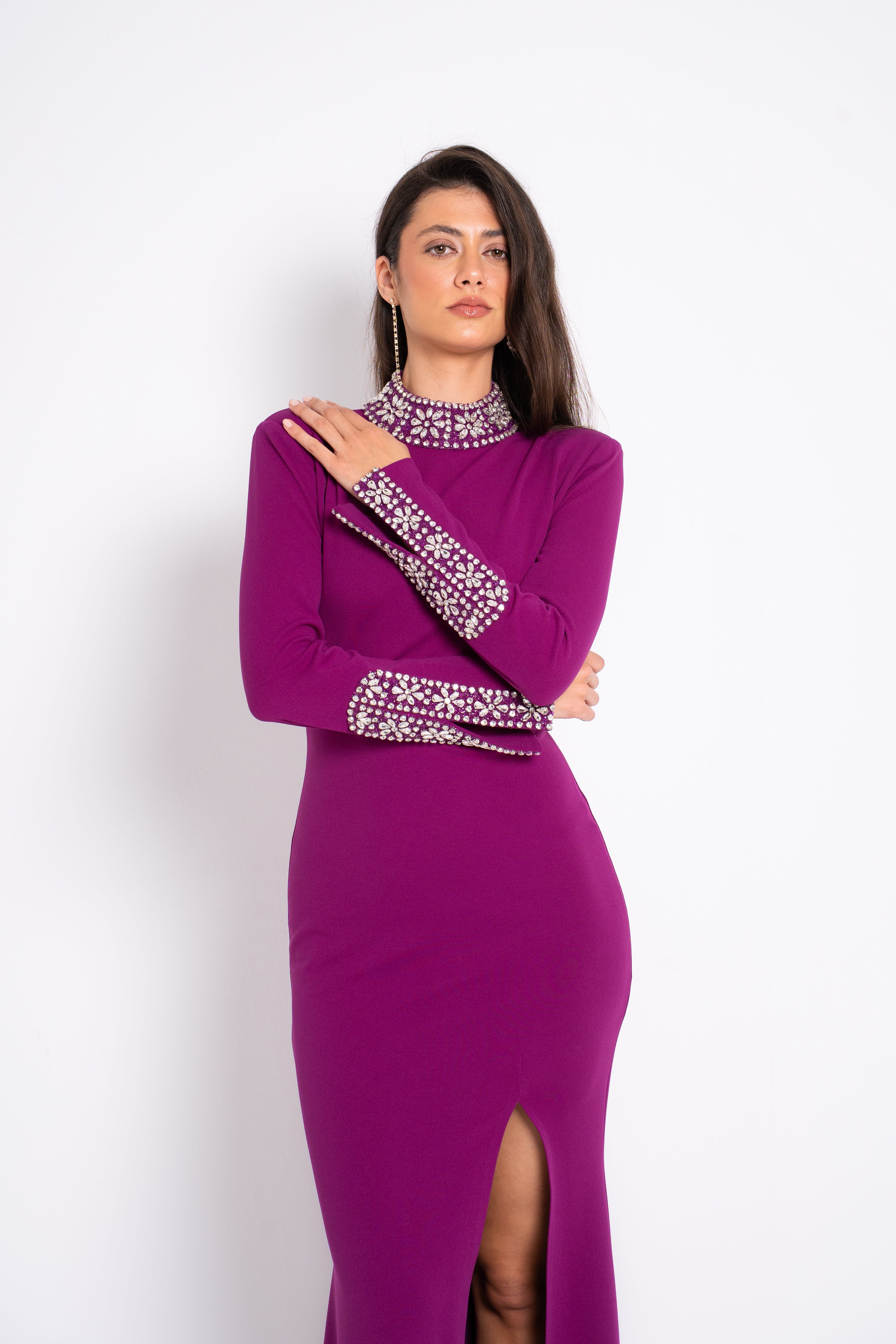 Introducing Florévia, the evening dress that knows how to make an entrance. Slip into luxurious long sleeves that whisper elegance while the dramatic high slit steals the show with every step. This maxi silhouette flows with sophisticated grace, perfect for those moments when you want to feel absolutely stunning. Whether you're heading to a gala, celebration, or special night out, Florévia delivers that perfect balance of refined glamour and daring allure. Turn heads and own the room in this showstopping piece that proves sometimes the best fashion moments are the ones that make you smile.