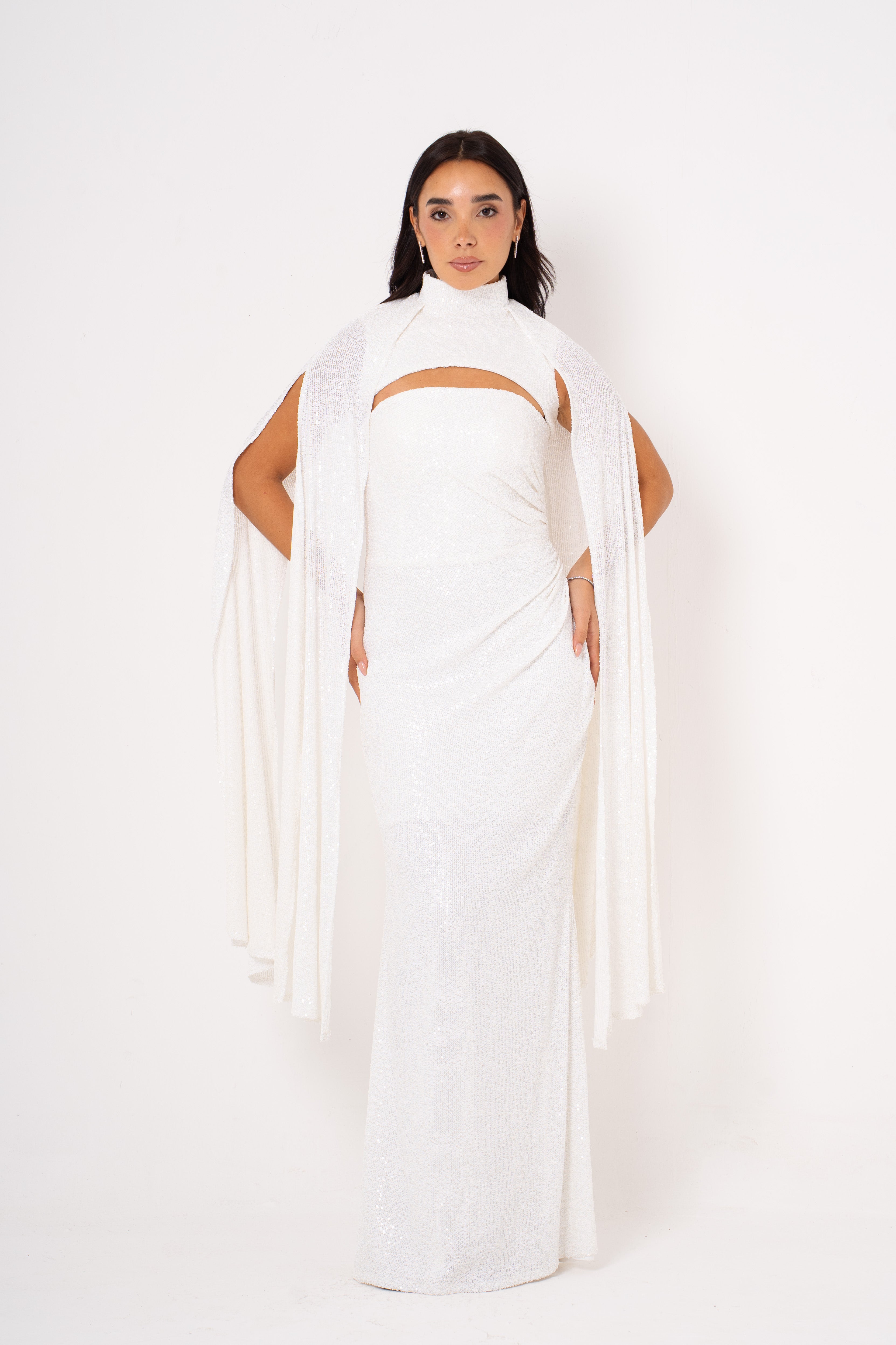 Isabetta is your ticket to turning heads at any evening soirée. This stunning halter neck maxi dress features shimmering sequined material that catches the light with every movement, creating an enchanting sparkle that demands attention. The elegant halter neckline offers a flattering silhouette while the flowing maxi length provides graceful sophistication. Perfect for galas, celebrations, or any occasion where you want to feel absolutely radiant and fabulous.