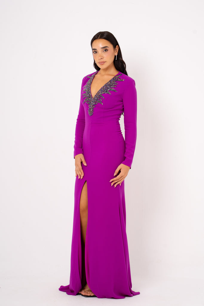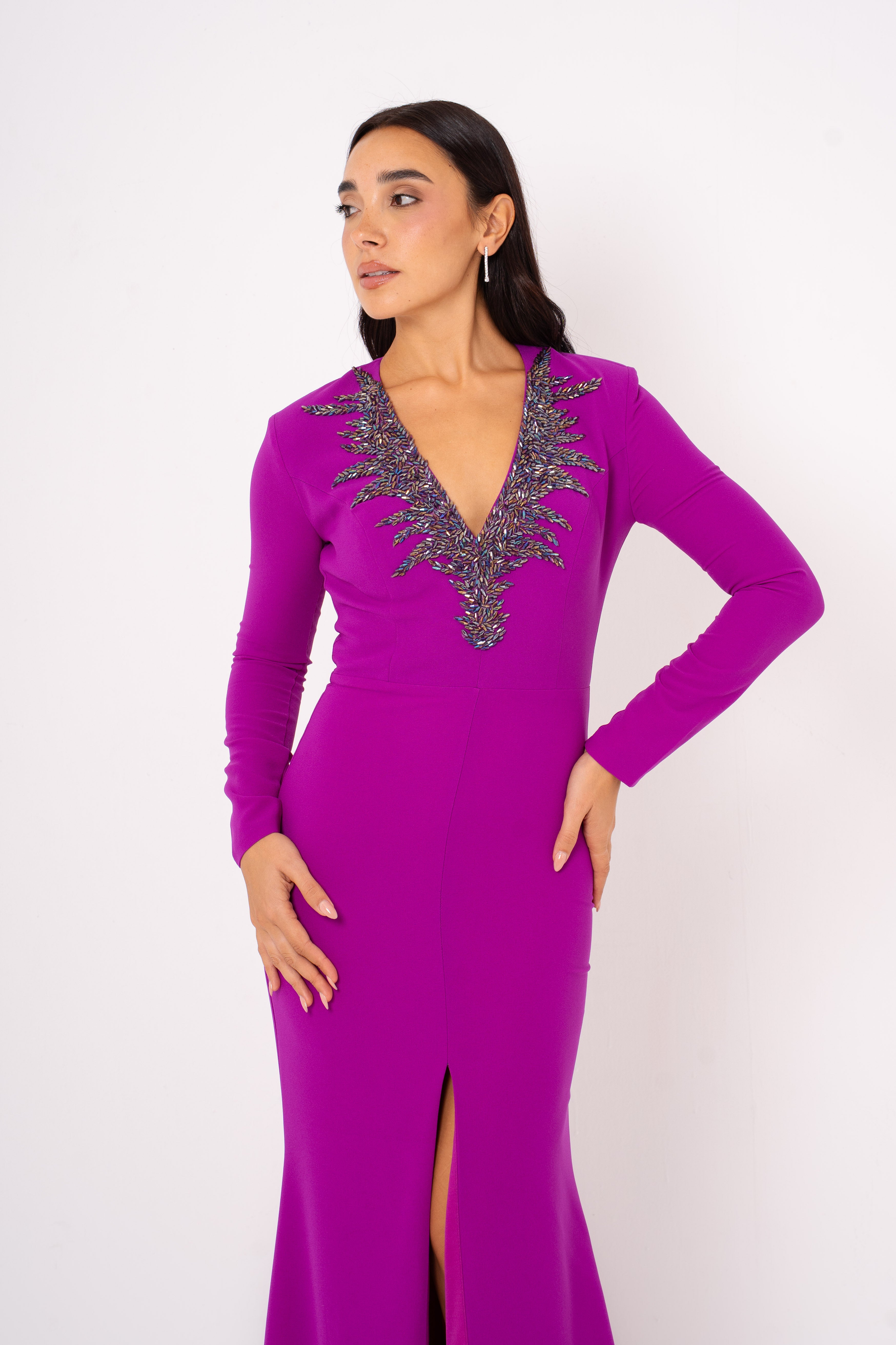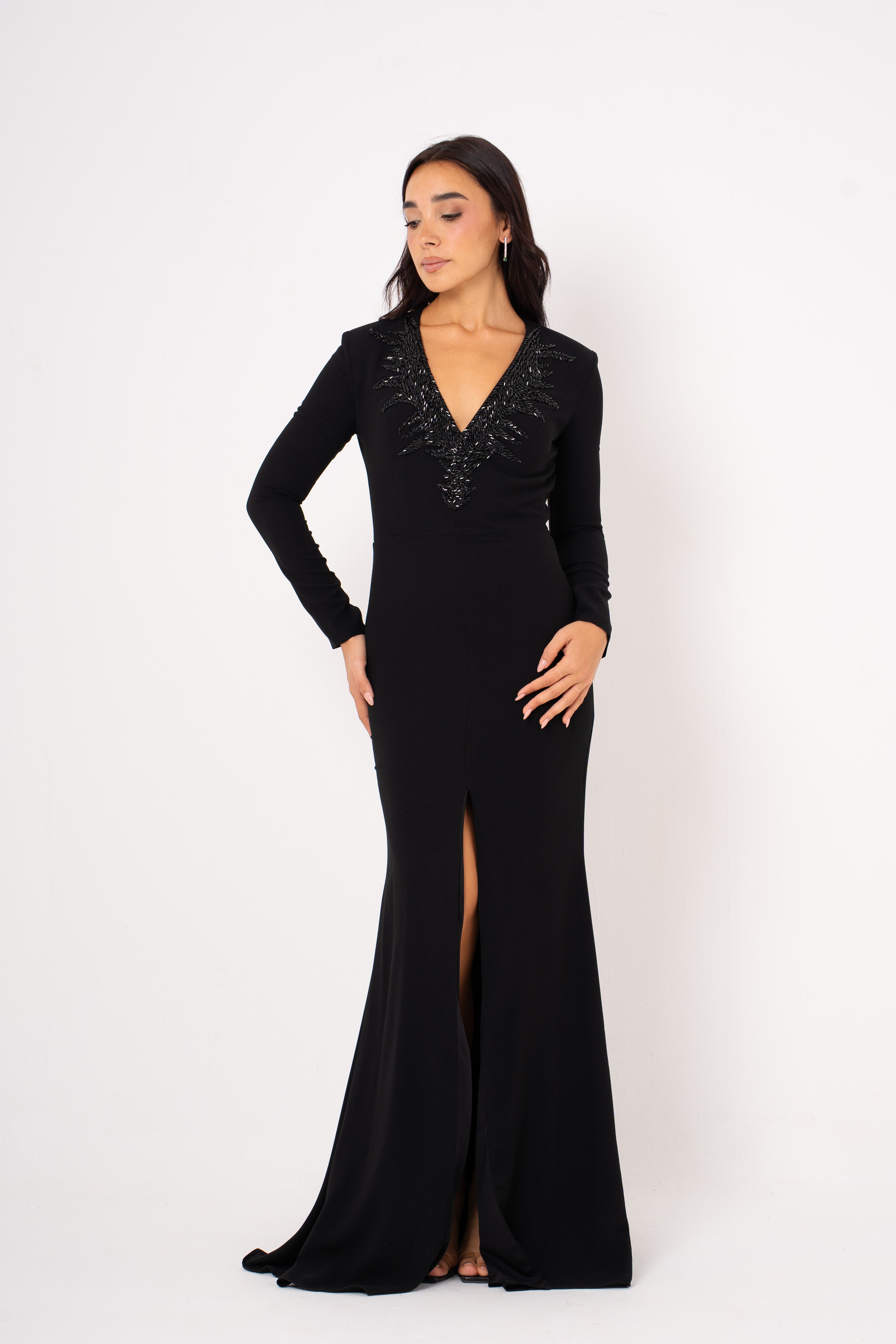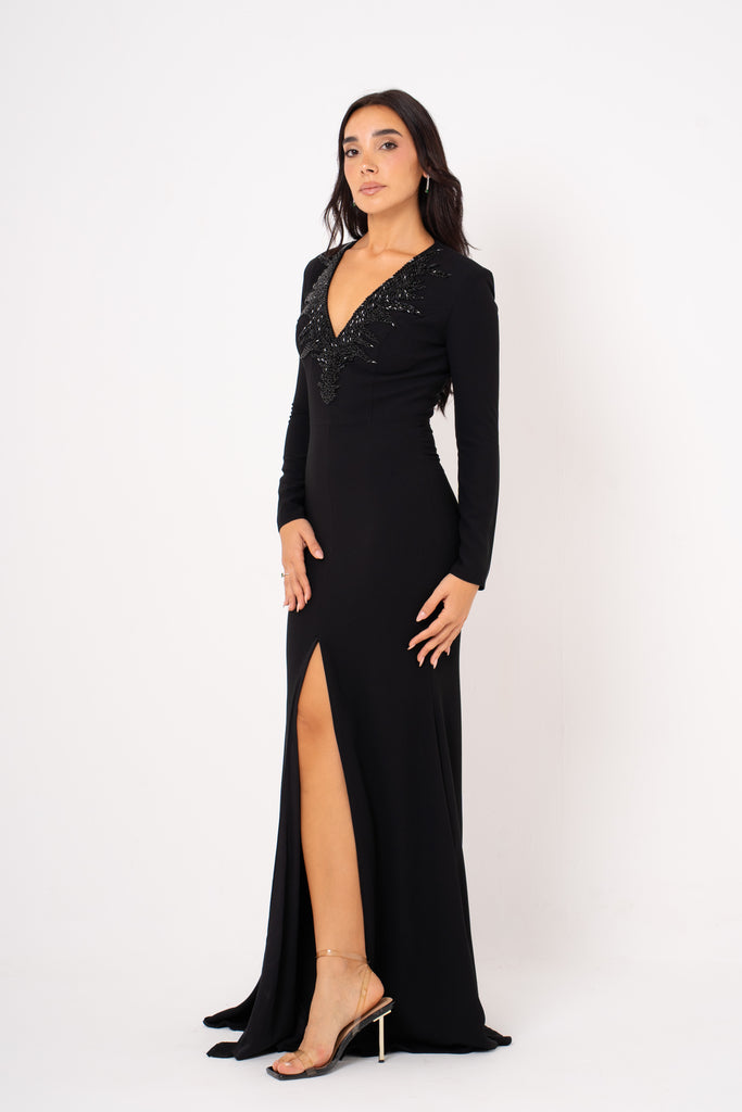Introducing Marlee—the dress that says "I'm here to turn heads and have fun doing it." This stunning long sleeve maxi evening dress features an elegant high slit that lets you move with confidence and flair. Perfect for those moments when you want to feel sophisticated yet playful, Marlee combines timeless silhouette with a daring edge. The flowing maxi length keeps things refined while the dramatic slit adds just the right amount of sass. Whether you're heading to a gala, celebration, or special night out, this dress delivers the glamour and personality you're craving. Slip into Marlee and own the room.