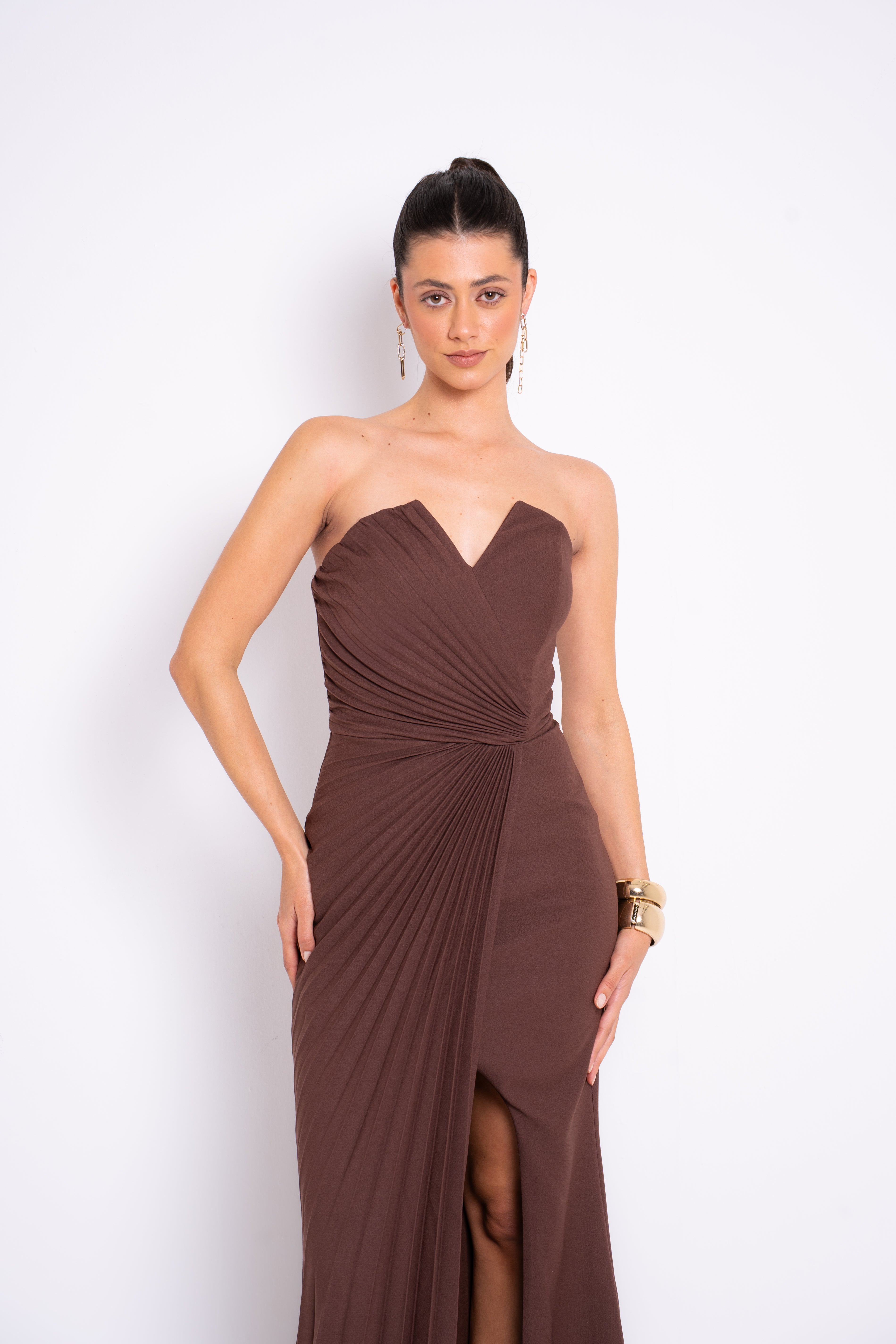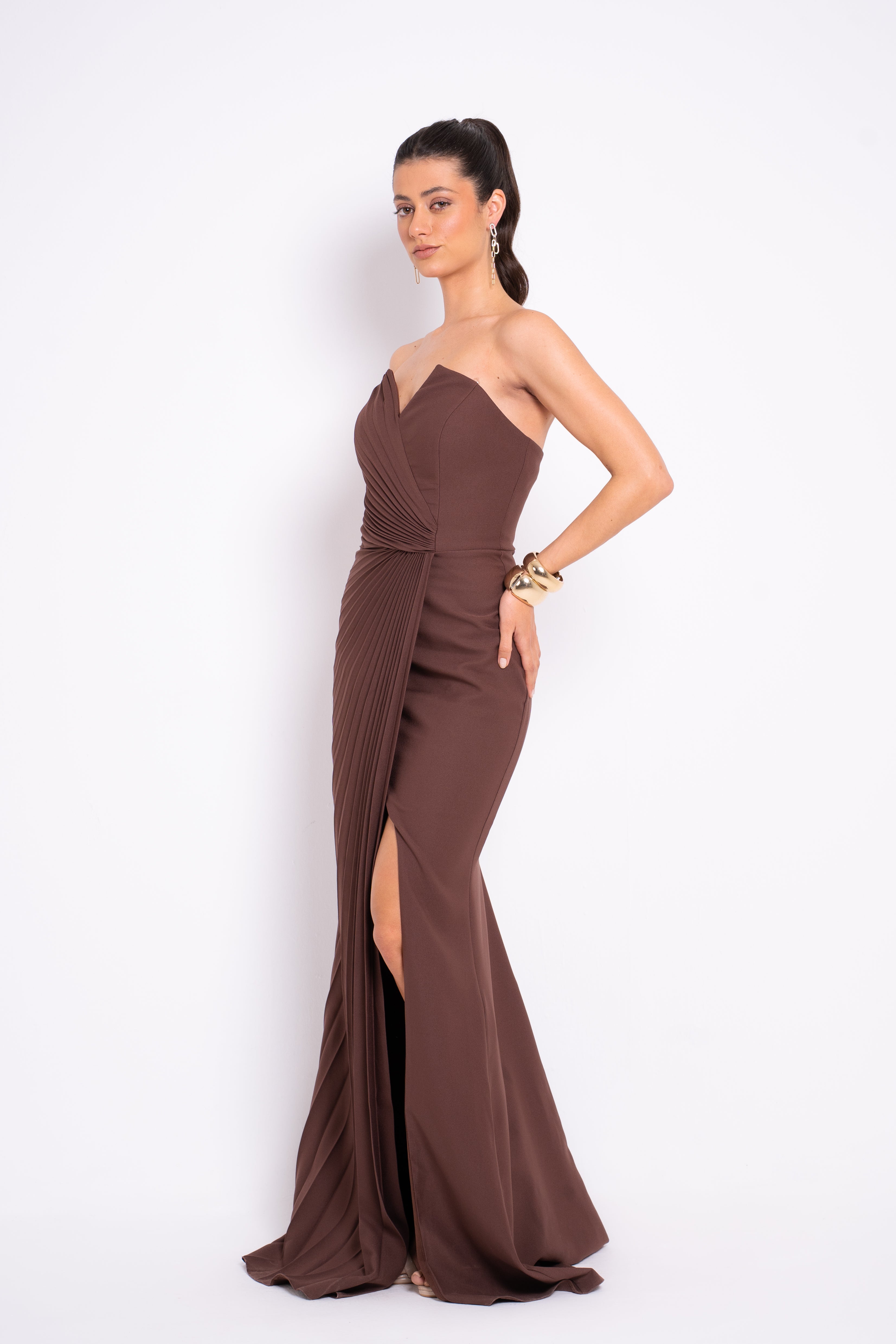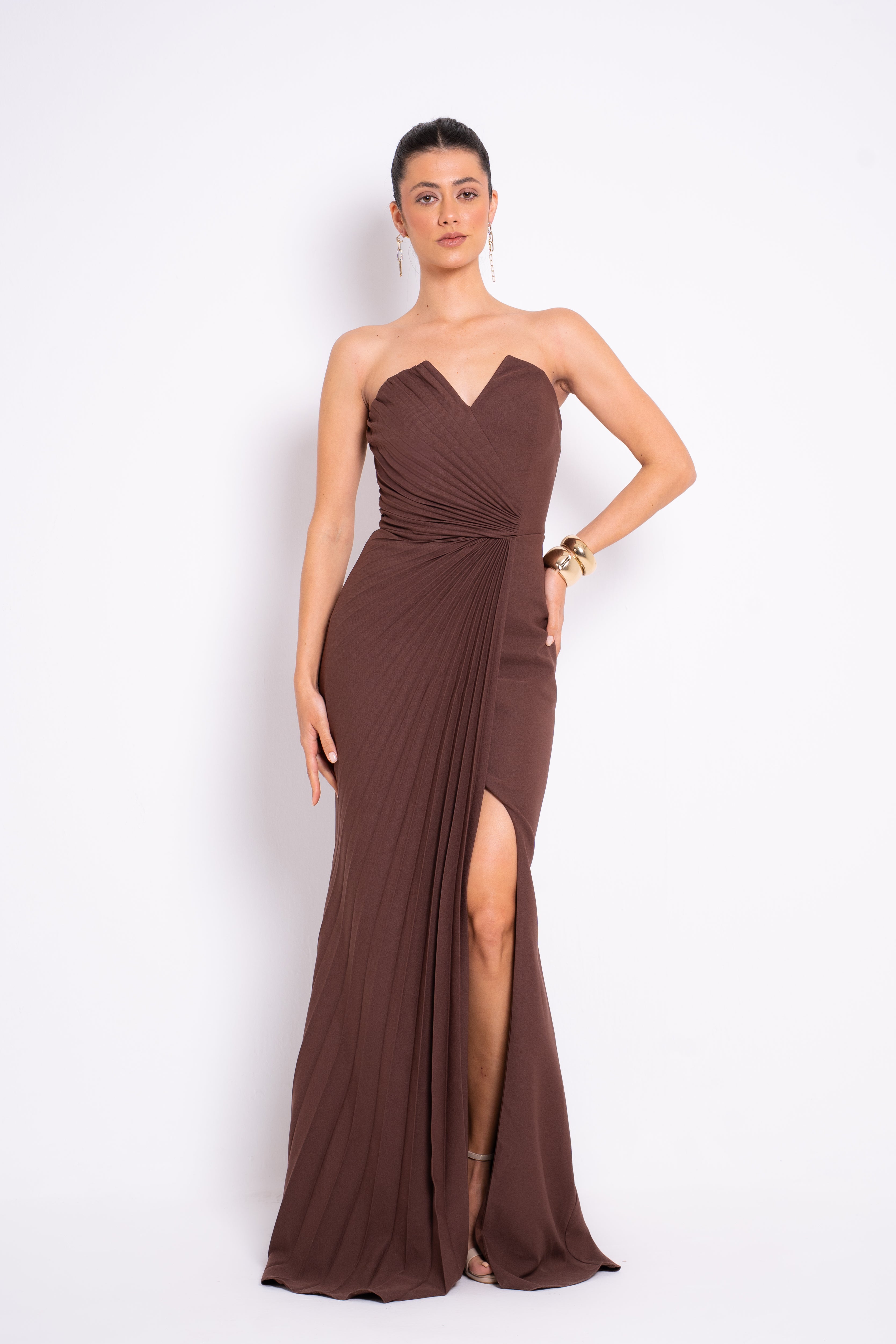 Introducing Rosina—your ticket to effortless elegance! This stunning strapless maxi evening dress glides down your frame with graceful sophistication, perfect for those moments when you want to turn heads without trying too hard. The clean, bare-shoulder silhouette keeps things chic and timeless, while the flowing maxi length adds drama and movement to every step. Whether you're heading to a gala, wedding, or special celebration, Rosina delivers that "I woke up like this" glamour. Slip into something extraordinary.