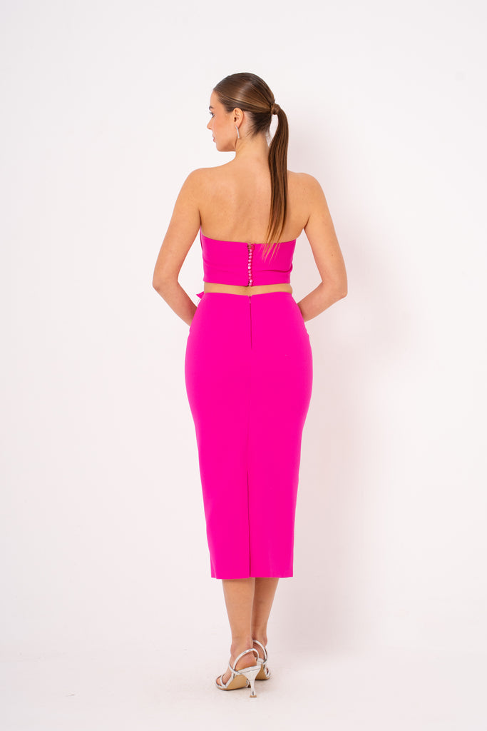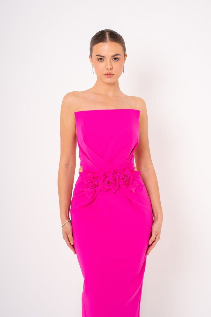 Introducing Aisha—the dress that knows how to make an entrance! This stunning open back strapless midi features luxurious crepe fabric that drapes beautifully and moves with you. The daring open back design paired with the strapless neckline creates an effortlessly chic silhouette perfect for evening events, cocktail parties, or whenever you want to turn heads. Crepe's natural texture adds sophistication while keeping you comfortable all night long. Dress it up with heels and statement jewelry for maximum impact!