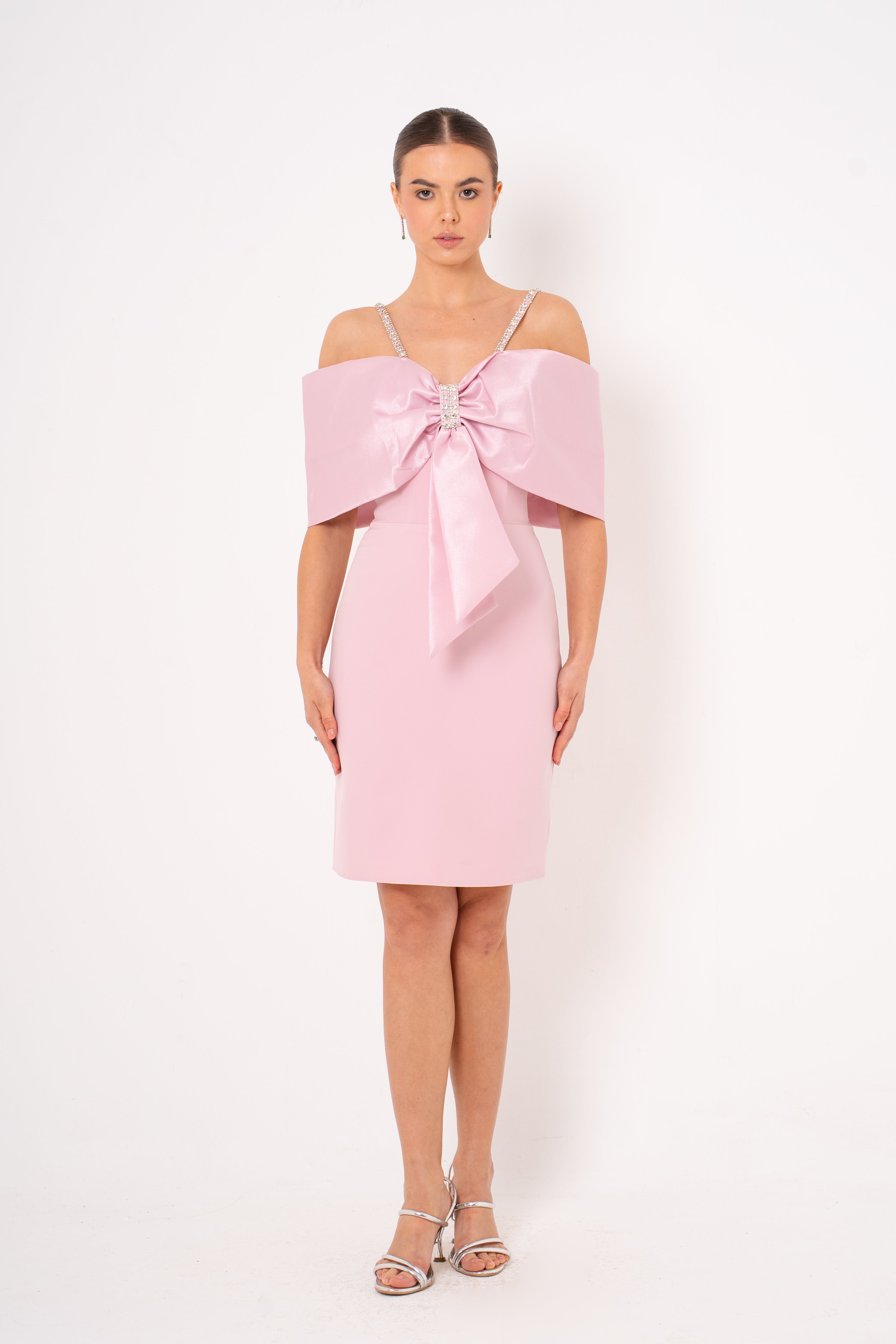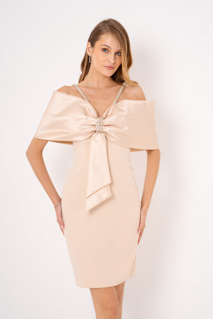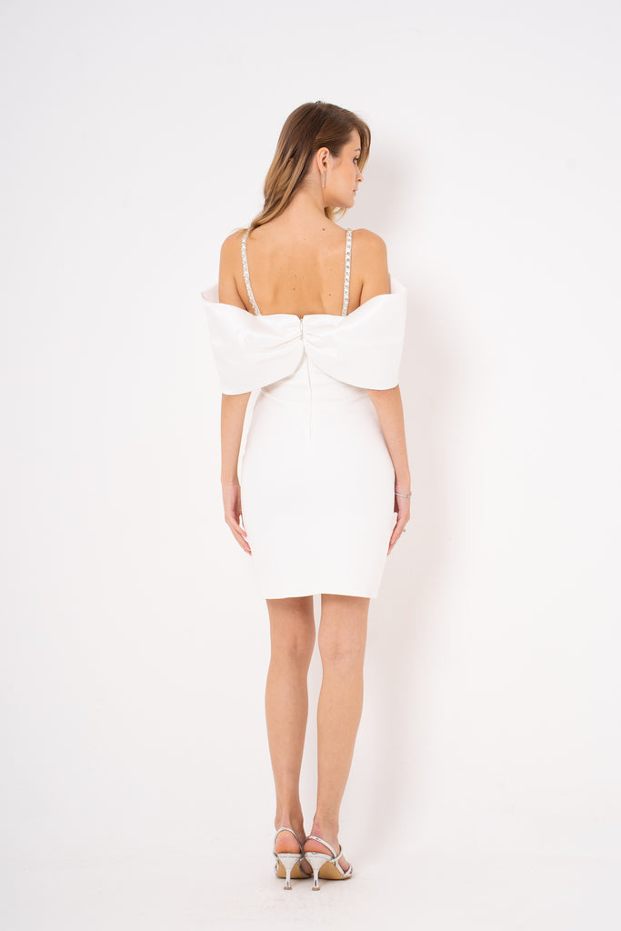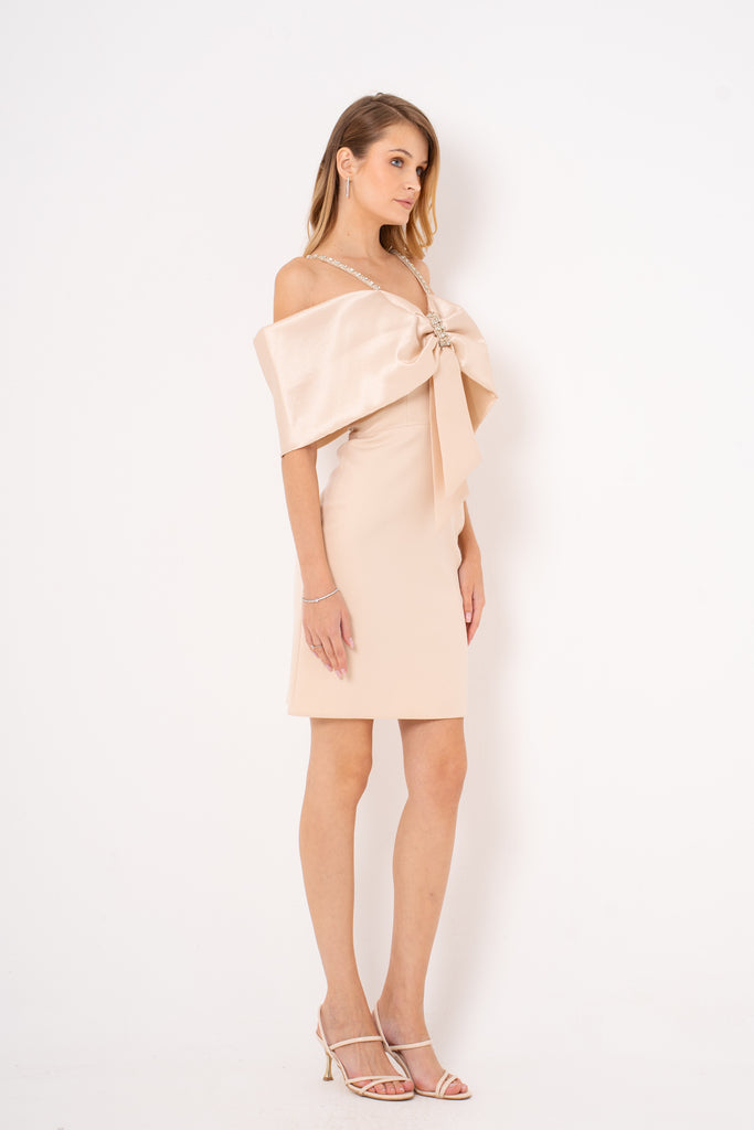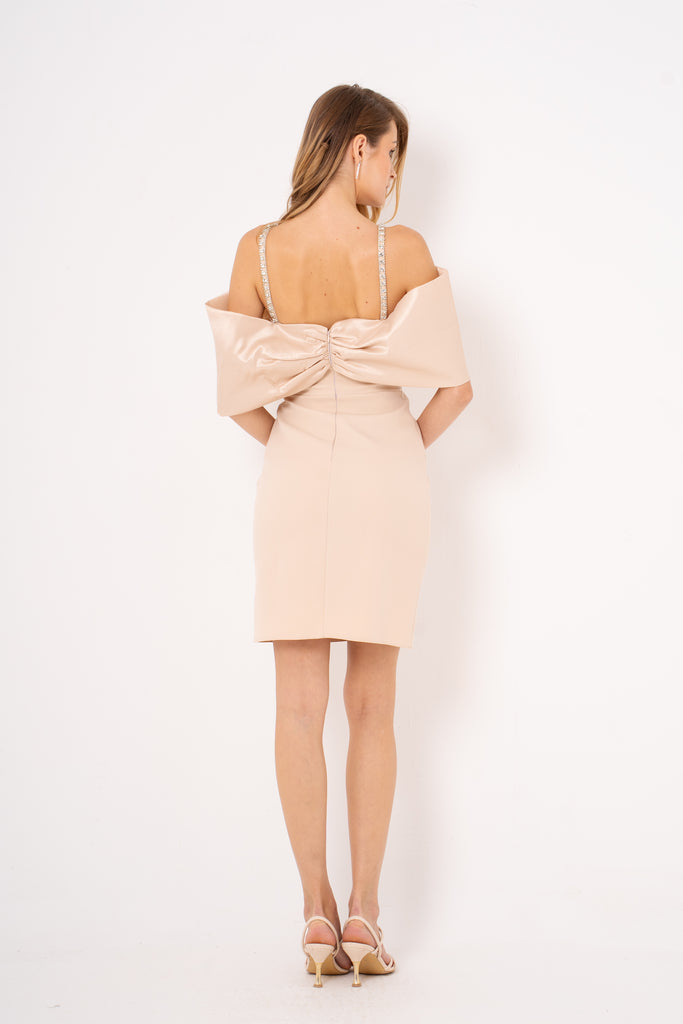Turn heads with Aitana, the charming mini dress with playful cap sleeves and a stunning satin bow. Made from luxurious crepe material, this sleeveless dress is perfect for any occasion. Get ready to be the center of attention.