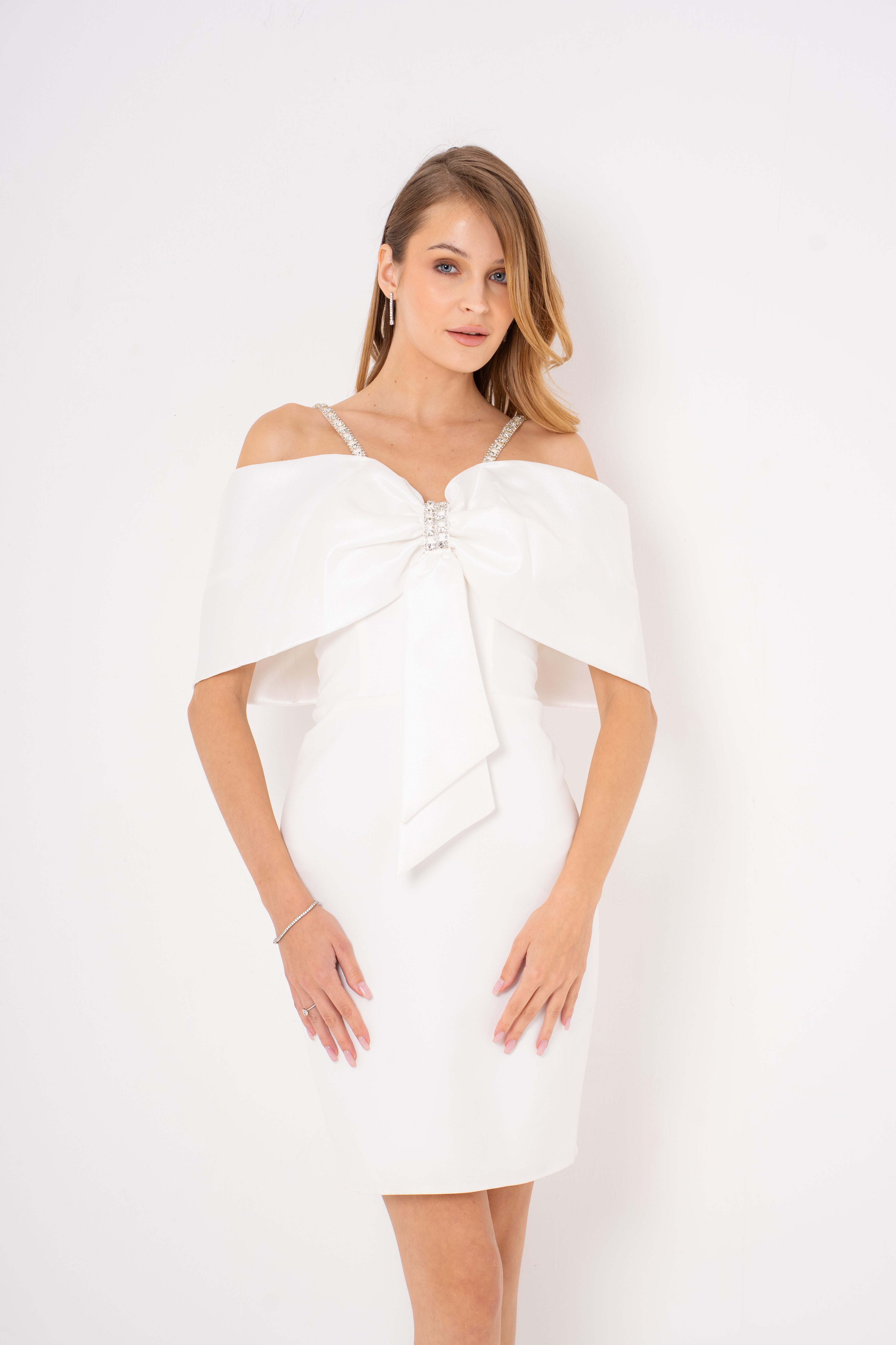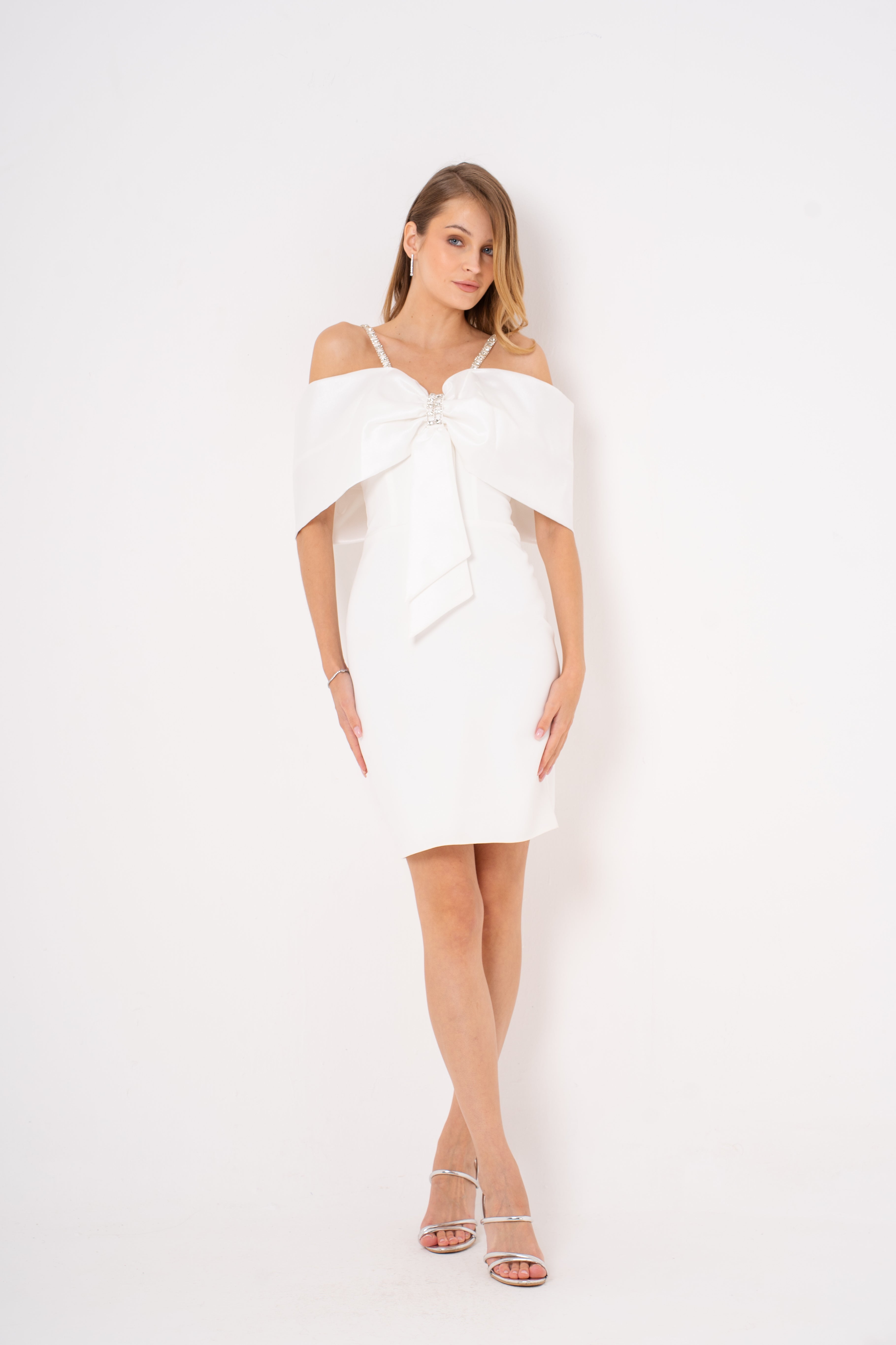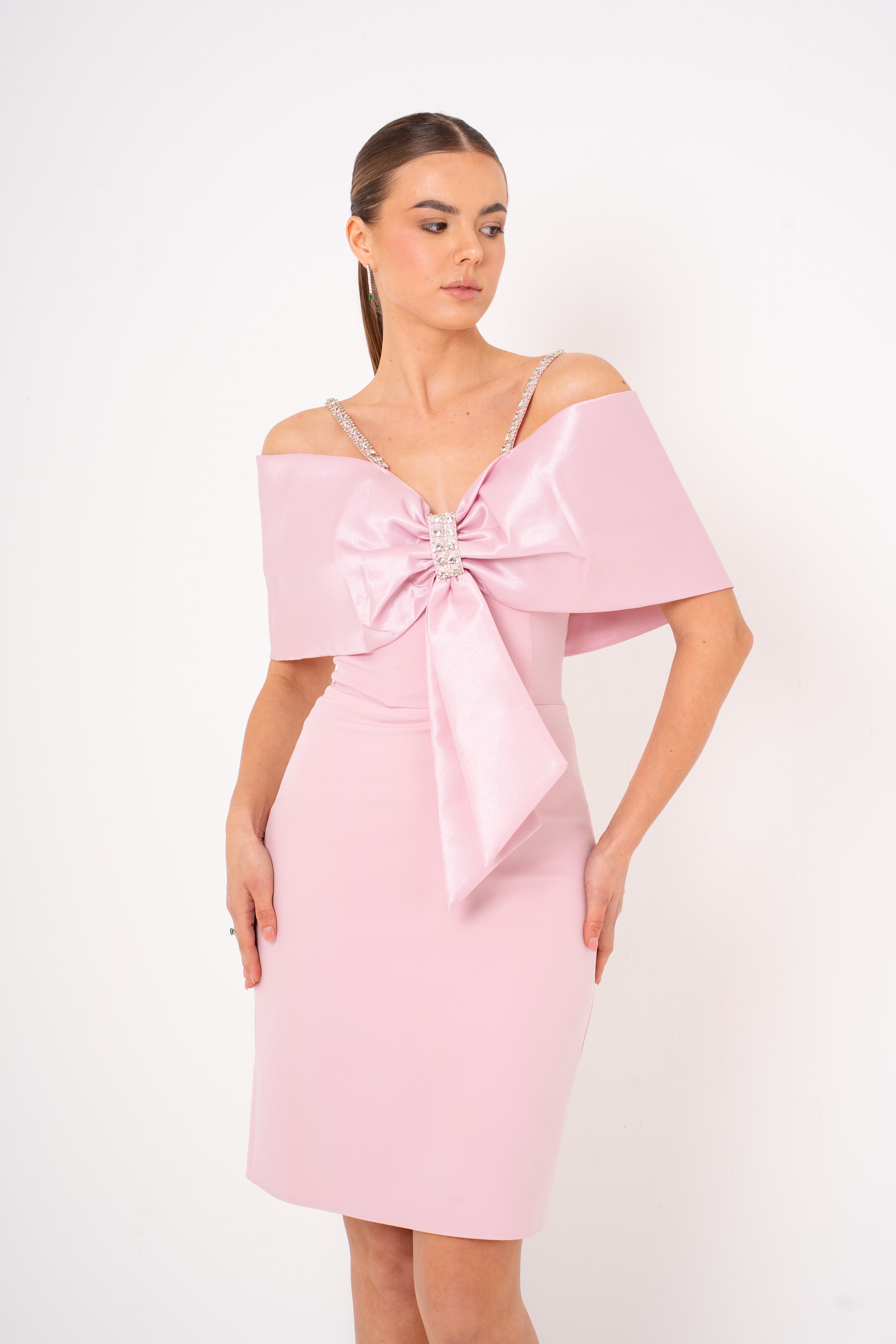 Turn heads with Aitana, the charming mini dress with playful cap sleeves and a stunning satin bow. Made from luxurious crepe material, this sleeveless dress is perfect for any occasion. Get ready to be the center of attention.