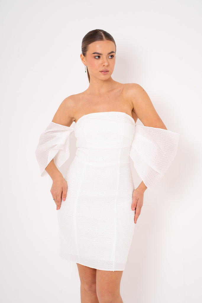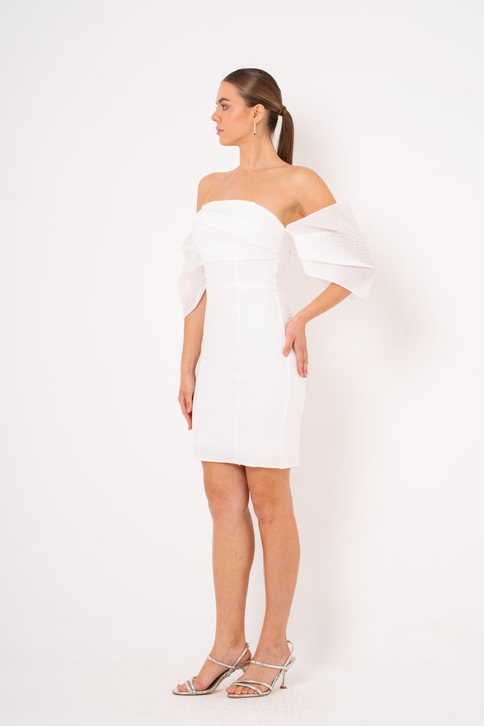 Vera is your ticket to effortless elegance! This off-shoulder mini evening dress strikes the perfect balance between chic and flirty, with a neckline that shows just the right amount of shoulder drama. The fitted silhouette flatters your curves while the mini length keeps things fun and modern. Perfect for cocktail parties, date nights, or any occasion where you want to turn heads without trying too hard. Slip into Vera and let your confidence do the talking!