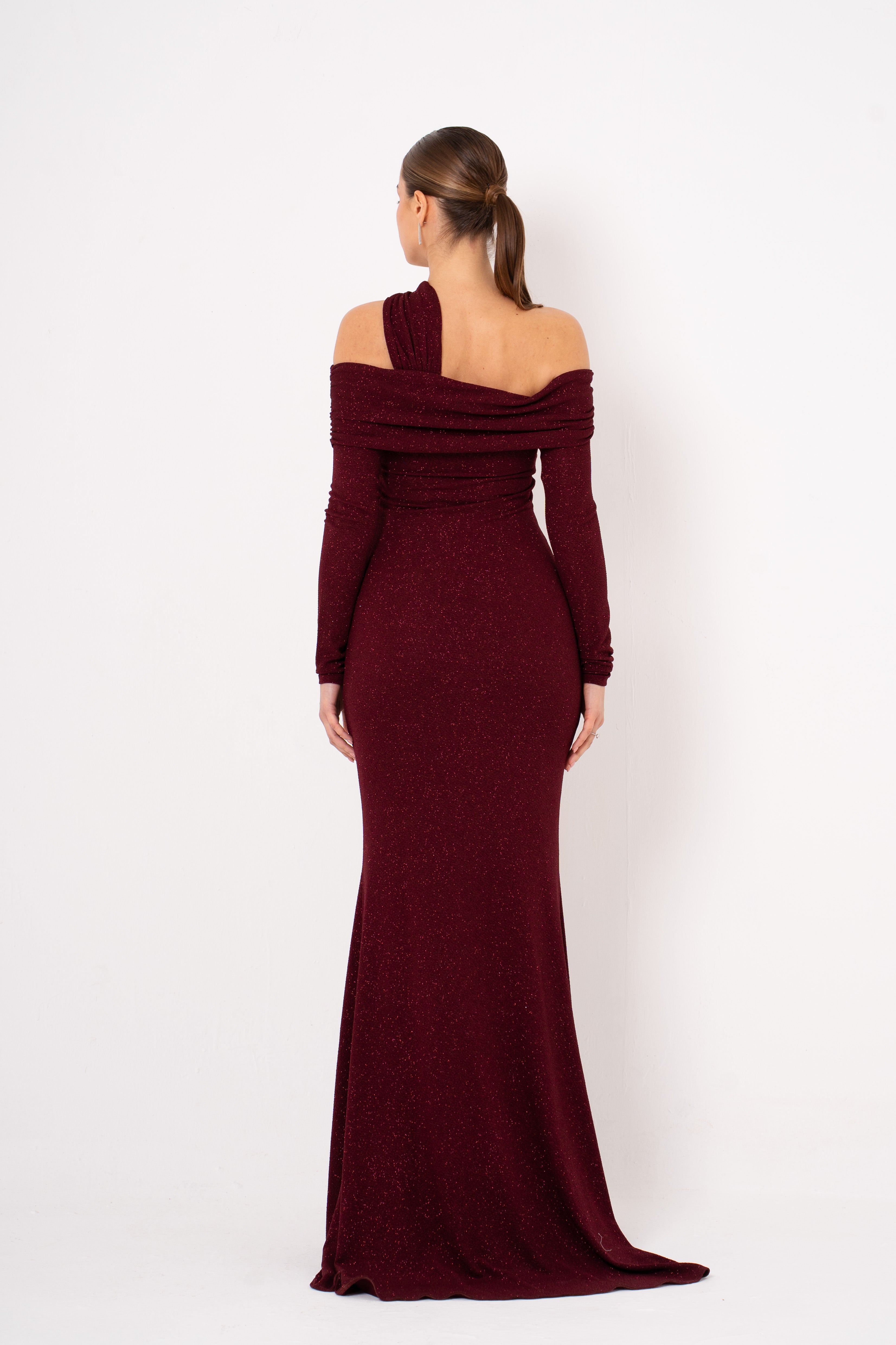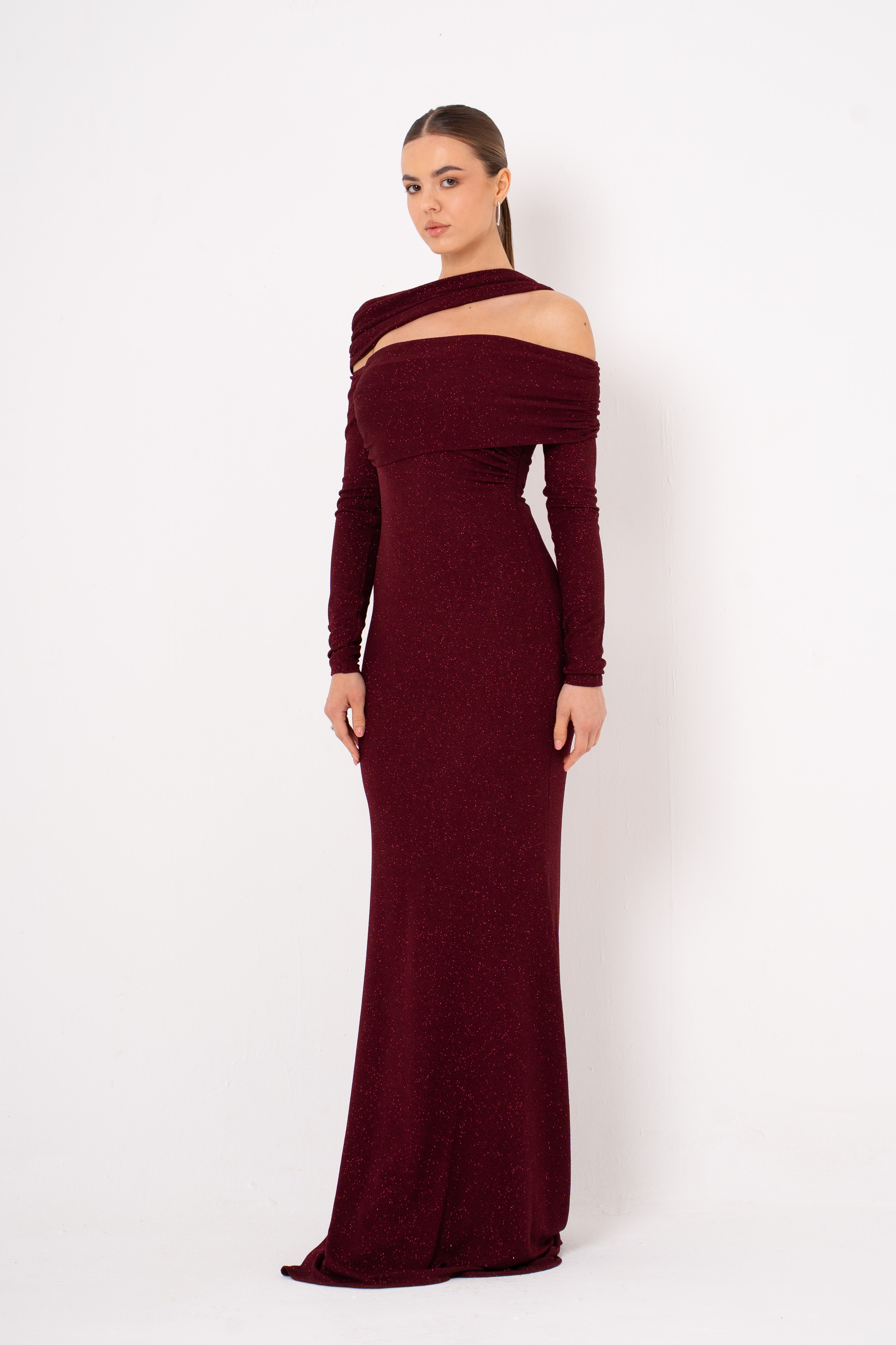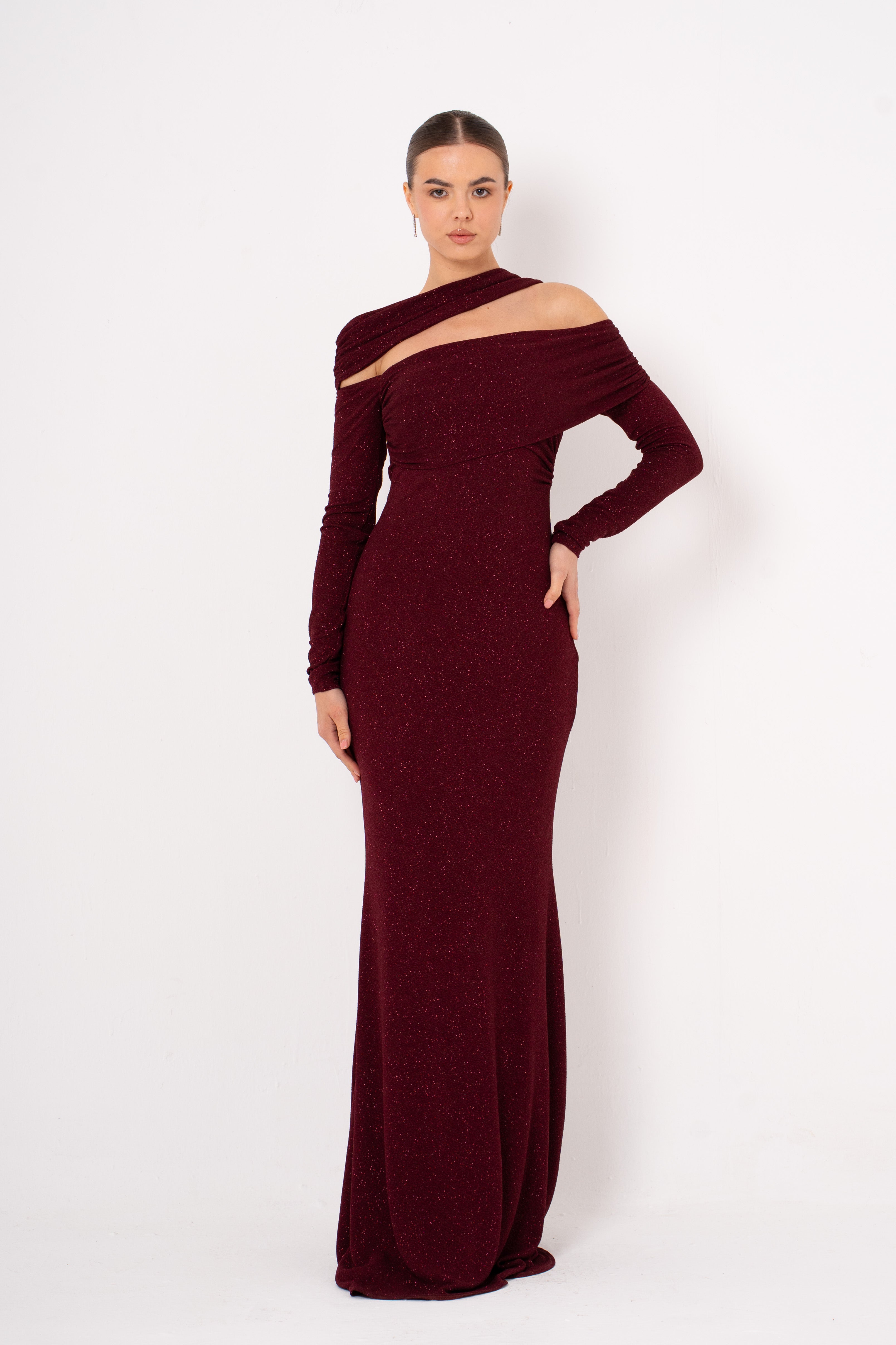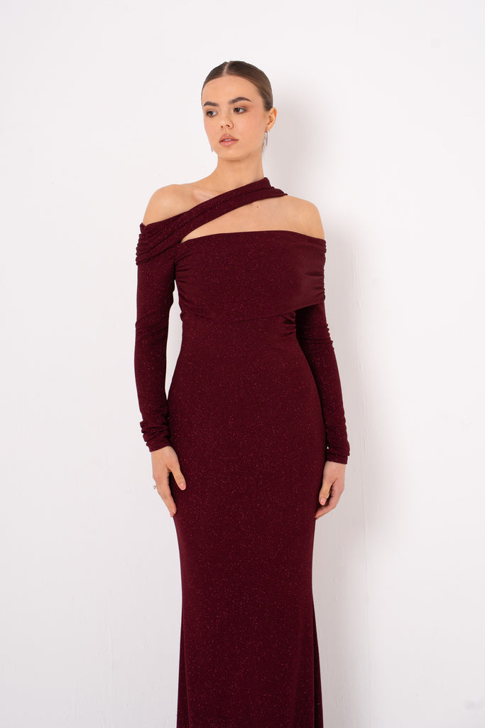 Introducing Breanna - the ultimate showstopper that combines elegance and playfulness. Featuring one shoulder and long sleeves, this maxi evening dress is perfect for making a statement at any formal event. And with its sequined material, you'll be sure to shine all night long.