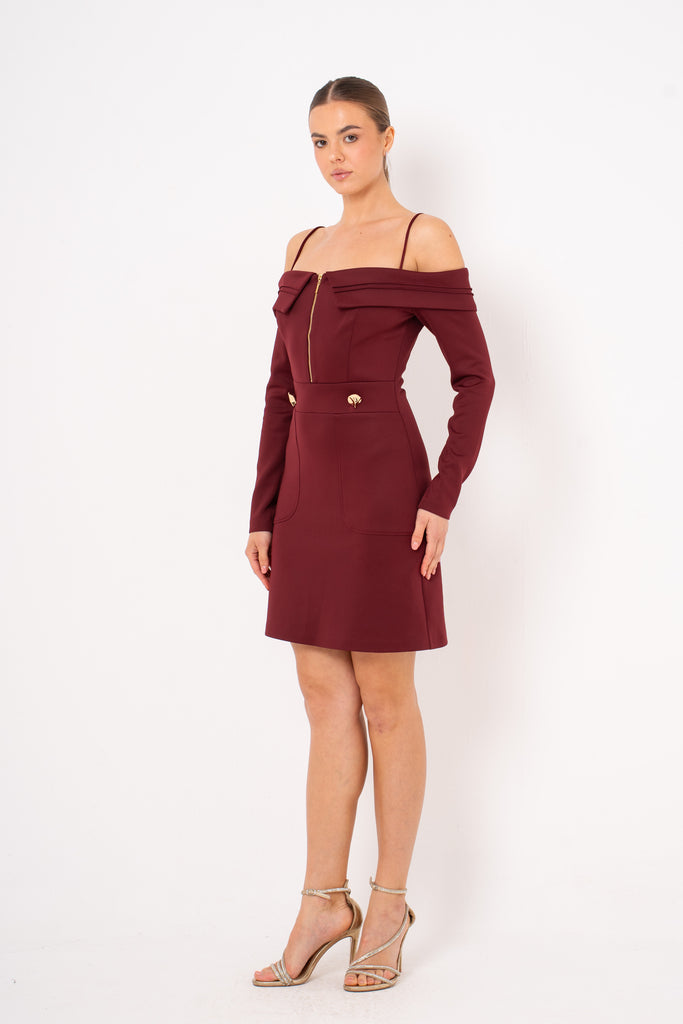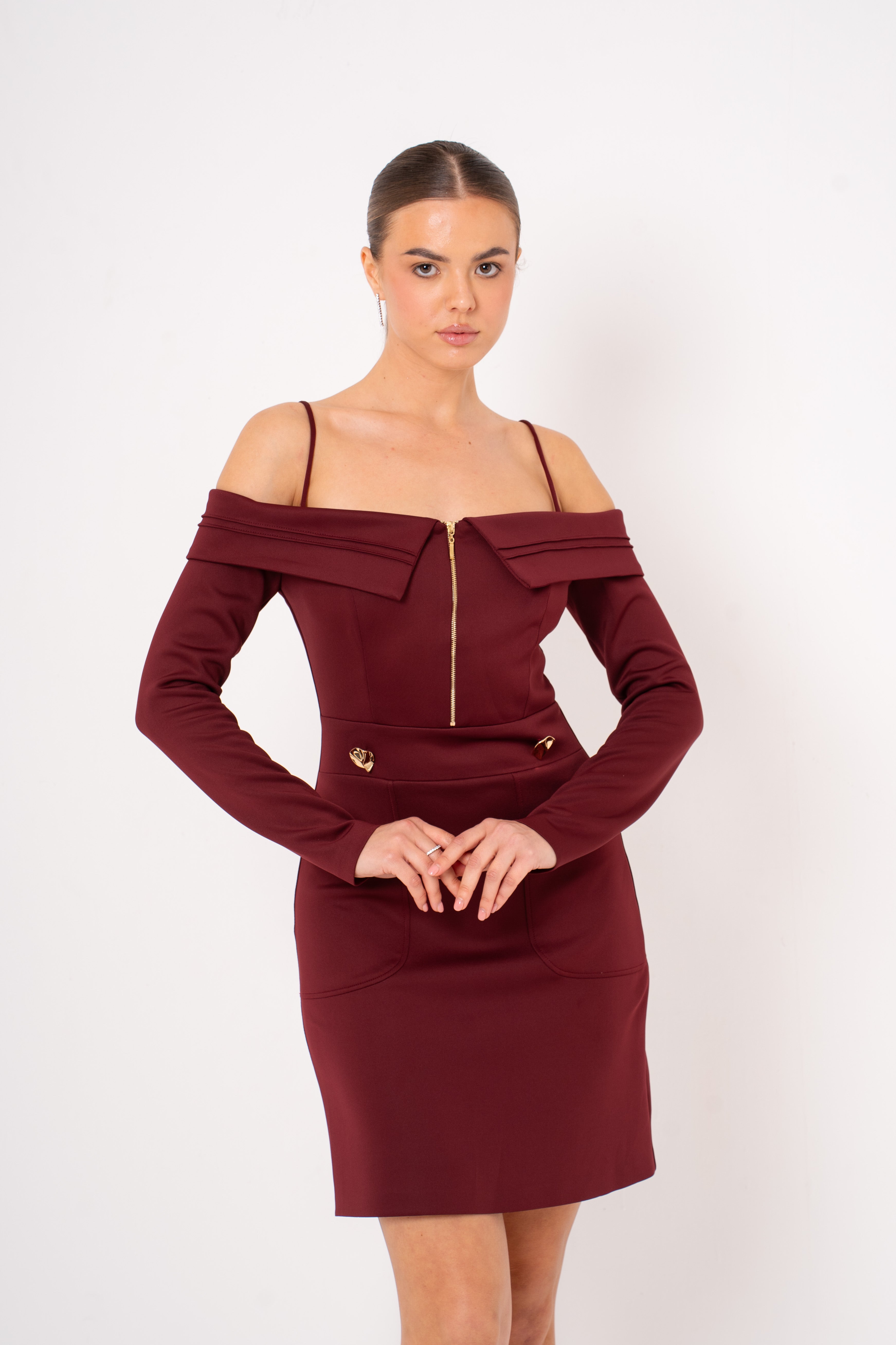 Slip into the spotlight with Elsie, an off-shoulder mini evening dress that's equal parts flirty and fabulous. This playful piece features a chic bare-shoulder design that shows off your collarbone while the fitted silhouette flatters your figure. Perfect for cocktail parties, date nights, or any occasion where you want to turn heads. The mini length keeps things fun and modern, while the elegant cut ensures you'll feel confident and gorgeous. Make every moment memorable in this show-stopping dress.