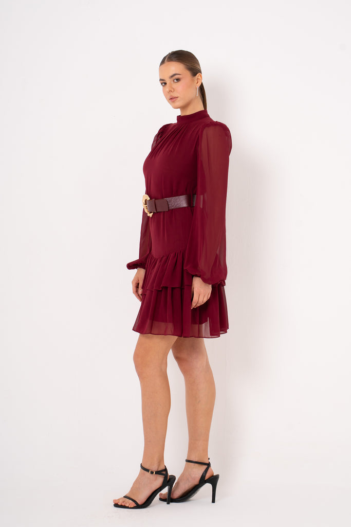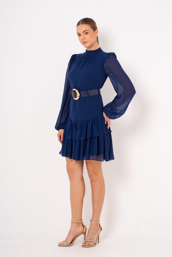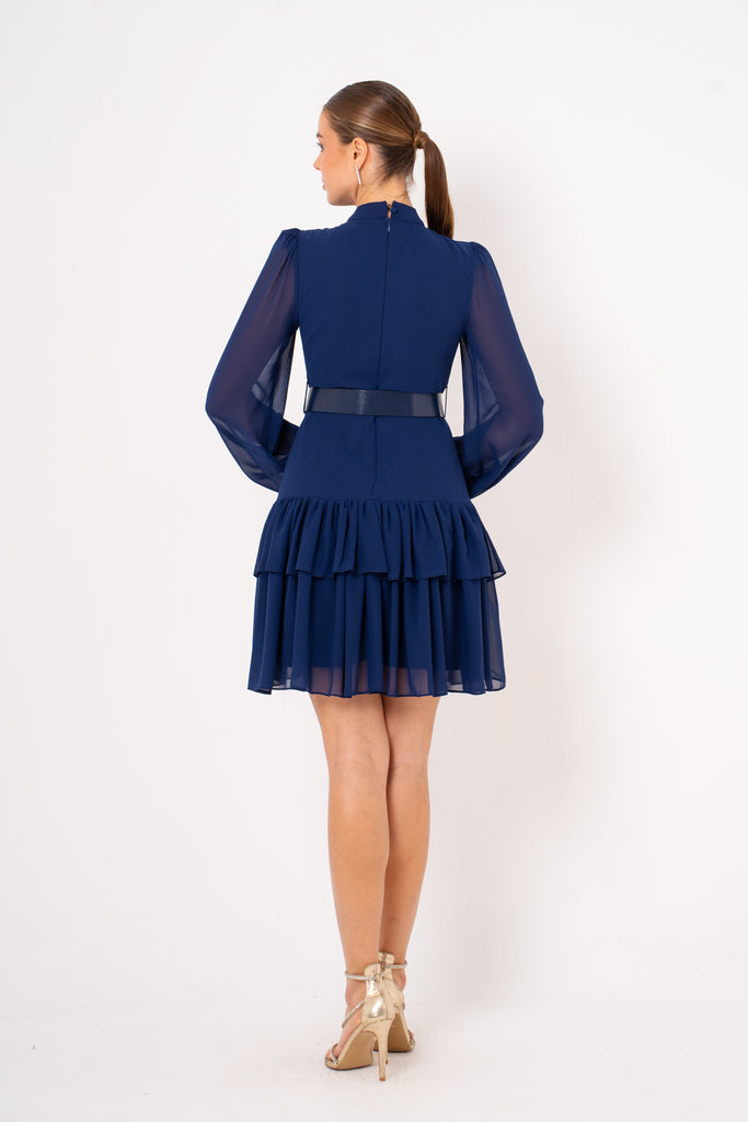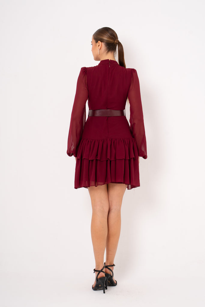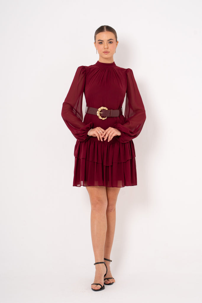 Scarlett is your go-to mini evening dress for those nights when you want to turn heads without trying too hard. Crafted from flowing chiffon, this playful piece features elegant long sleeves that add just the right touch of sophistication while keeping things fun and flirty. The lightweight fabric drapes beautifully, moving with you through every dance and conversation. Perfect for cocktail parties, dinner dates, or any occasion where you want to feel effortlessly chic and undeniably fabulous.
