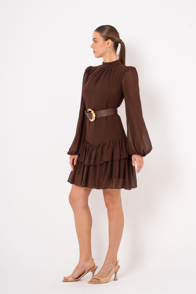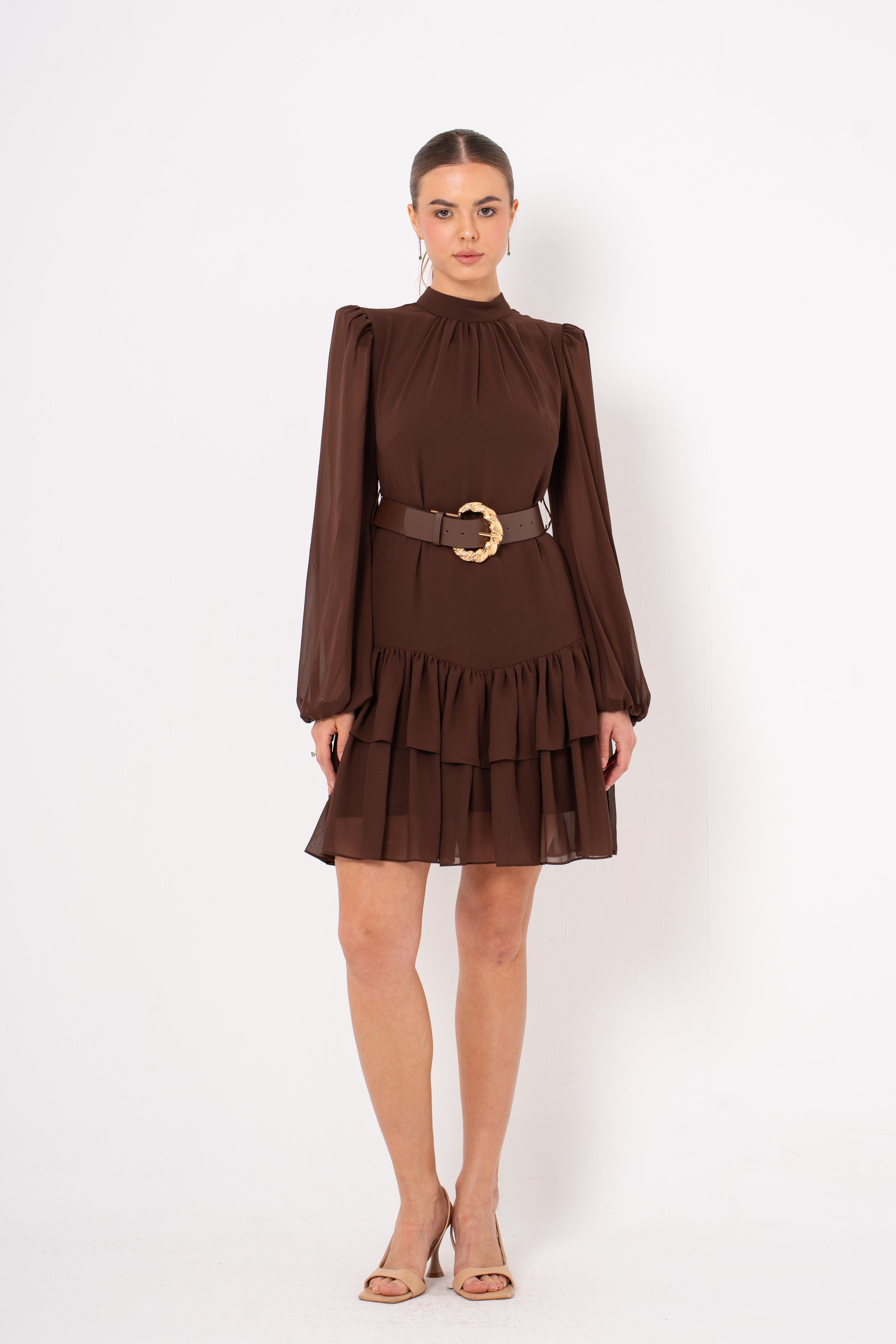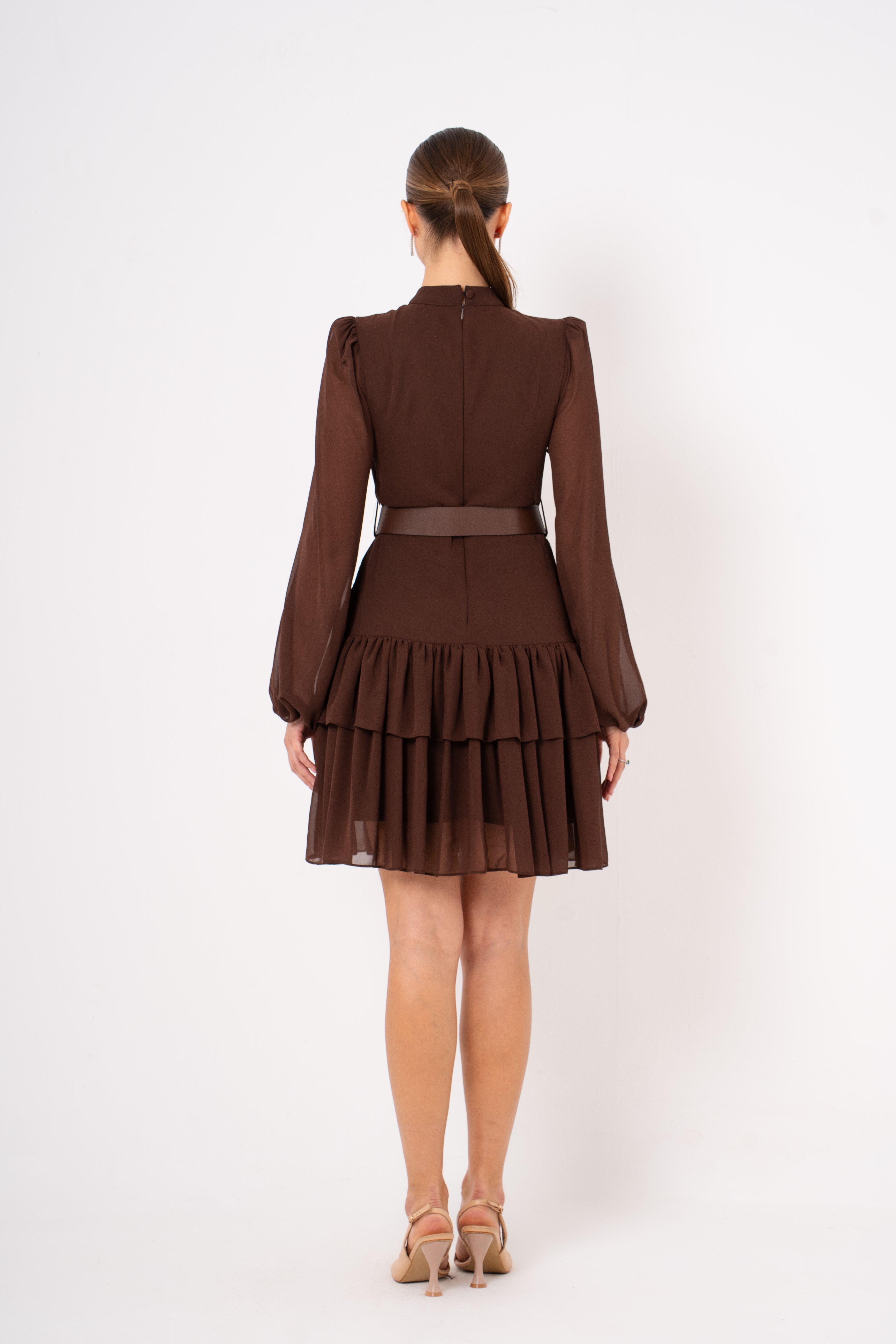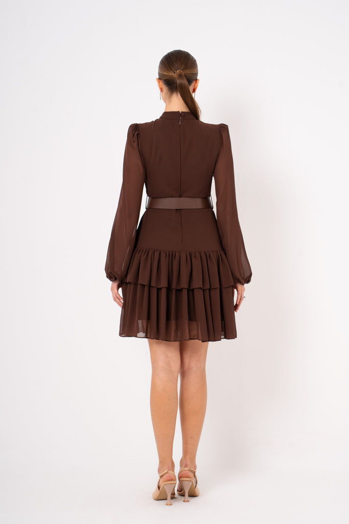 Scarlett is your go-to mini evening dress for those nights when you want to turn heads without trying too hard. Crafted from flowing chiffon, this playful piece features elegant long sleeves that add just the right touch of sophistication while keeping things fun and flirty. The lightweight fabric drapes beautifully, moving with you through every dance and conversation. Perfect for cocktail parties, dinner dates, or any occasion where you want to feel effortlessly chic and undeniably fabulous.