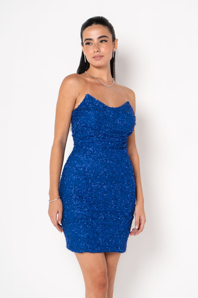 Step into the spotlight with Sera, a playful strapless mini dress covered in shimmering sequins. Perfect for dancing and dazzling, its flirty length and strapless design let you show off your confidence and have fun all night long. Get ready to sparkle and steal the scene wherever you go!