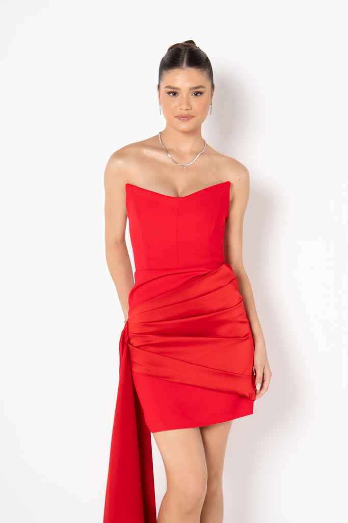 Turn heads with Talisa, a strapless mini evening dress designed to make every night unforgettable. Its sleek silhouette highlights your curves while keeping things flirty and fun. Perfect for dancing the night away or stealing the spotlight at any event, Talisa combines bold style with effortless charm. Embrace your playful side and shine wherever you go.