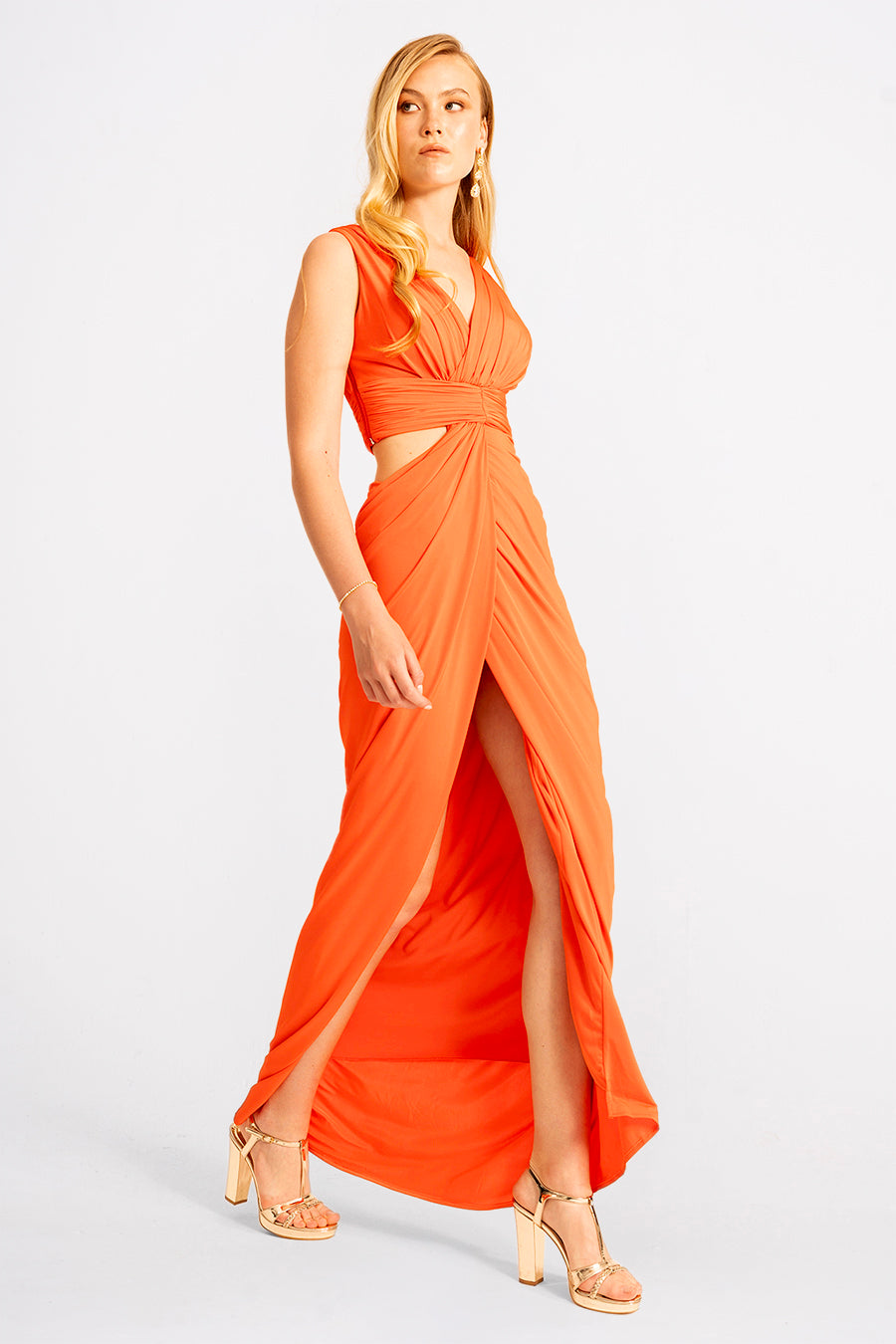 Introducing Arlisse, the dress that says "I'm here to turn heads." This sleeveless maxi evening gown features a daring high slit that lets you move with confidence and style. Perfect for those moments when you want to feel absolutely stunning—whether it's a gala, wedding, or night out that demands a little extra glamour. The flowing silhouette keeps things elegant while the bold slit adds just the right touch of drama. Because sometimes the best nights call for a dress that's as bold as you are.
