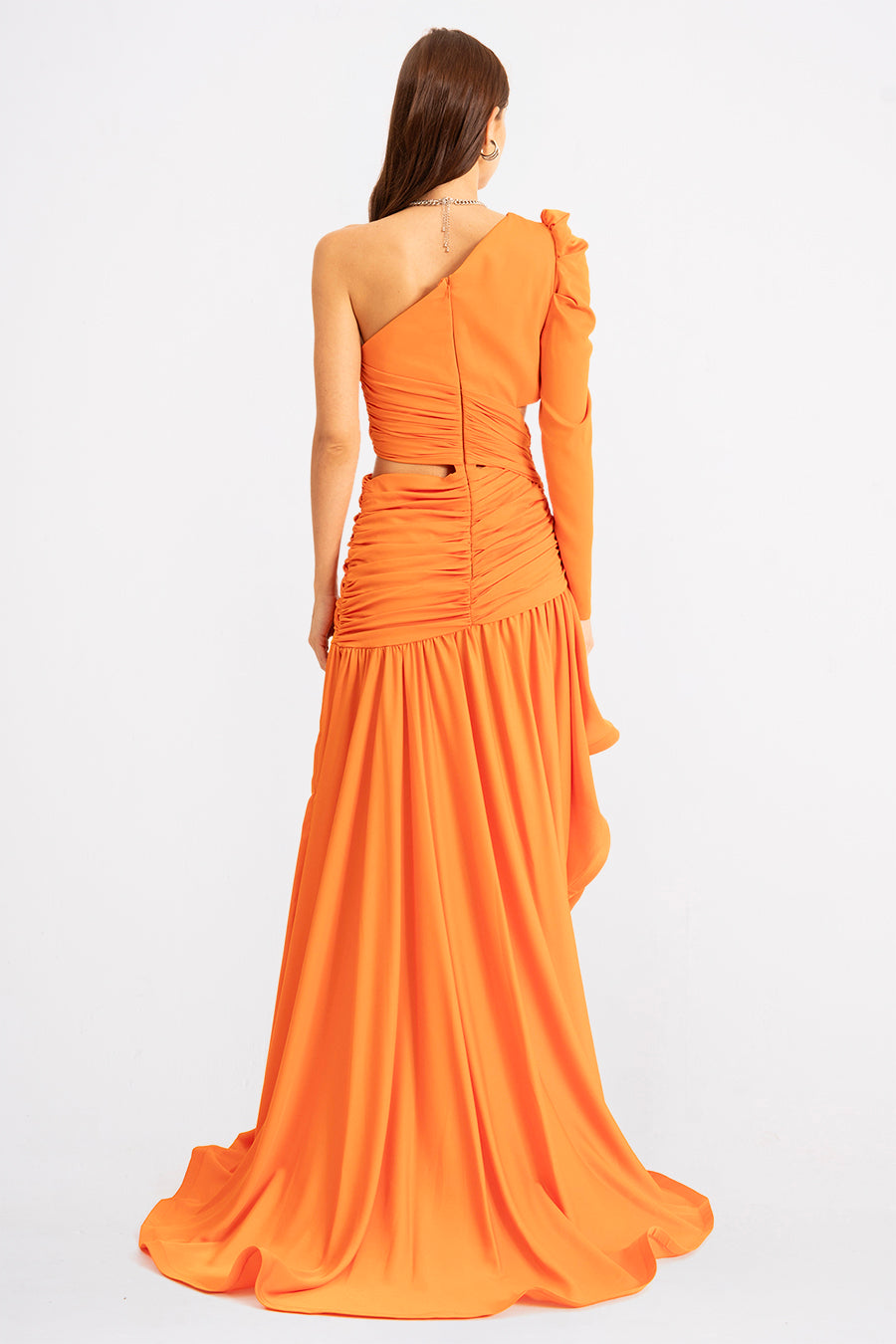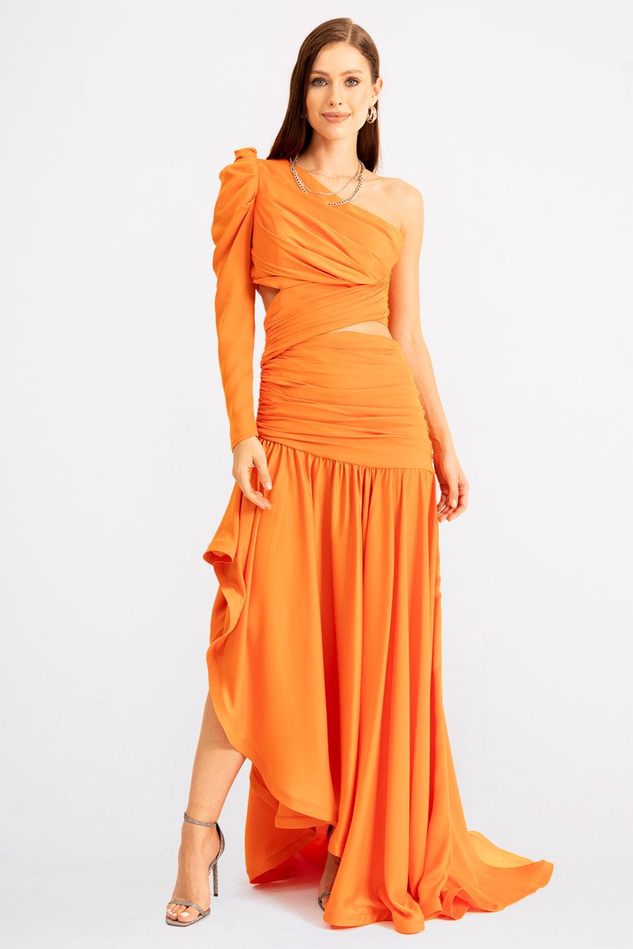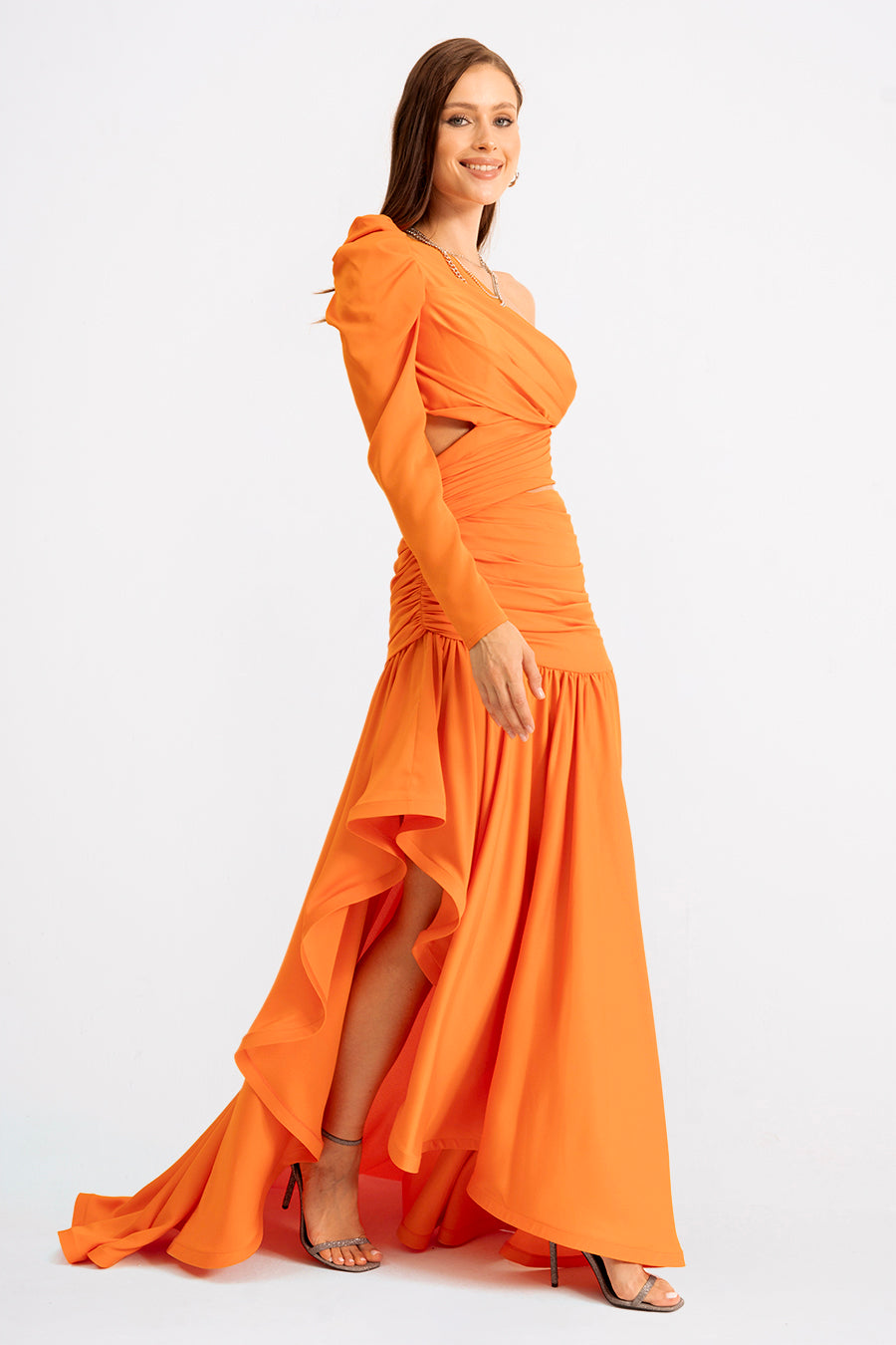 Make a statement with Koréla, the one-shoulder wonder that turns heads at every soirée. This asymmetric evening dress combines bold design with effortless elegance, featuring a daring single-shoulder silhouette that flatters and captivates. The flowing fabric drapes beautifully, creating movement and drama with every step. Perfect for those who dare to stand out, Koréla transforms any evening into an unforgettable moment. Slip into sophistication and let your confidence shine.