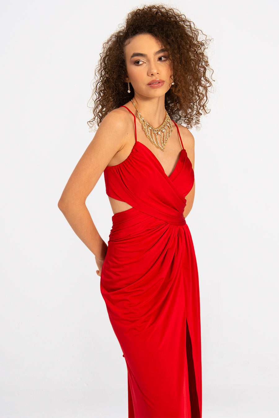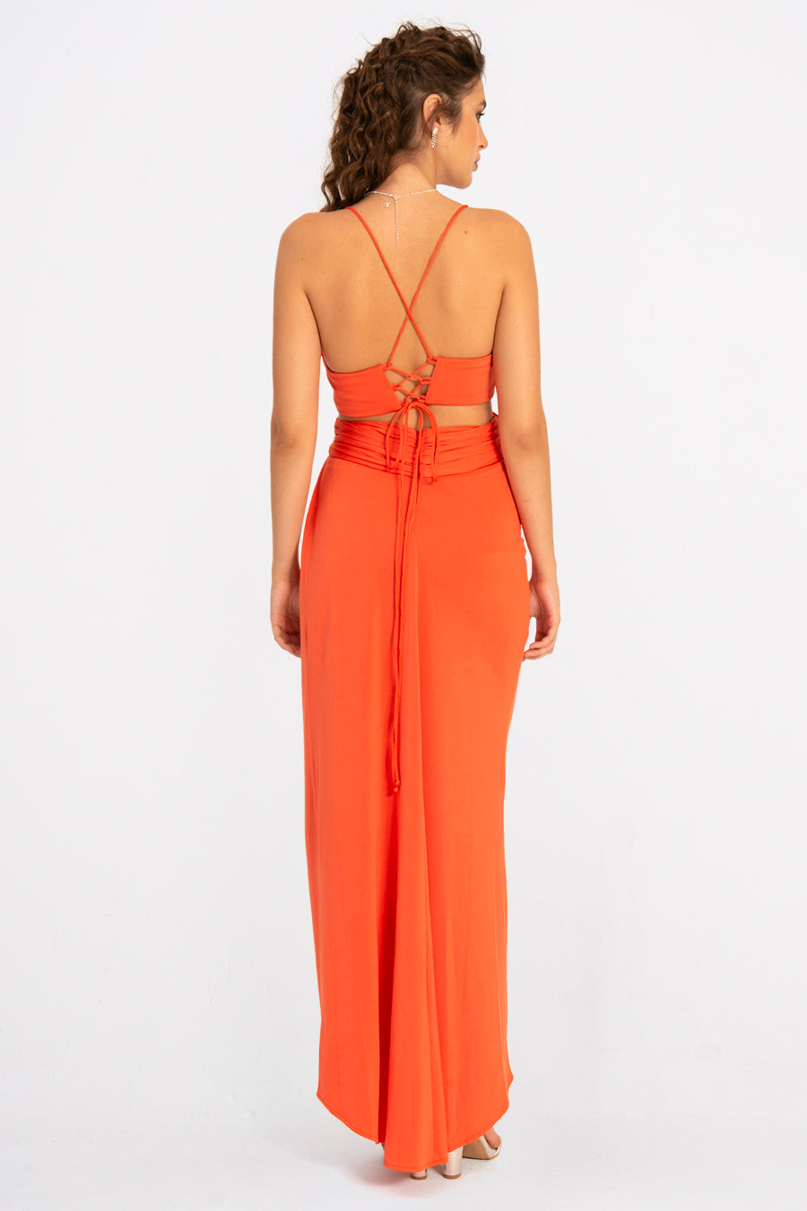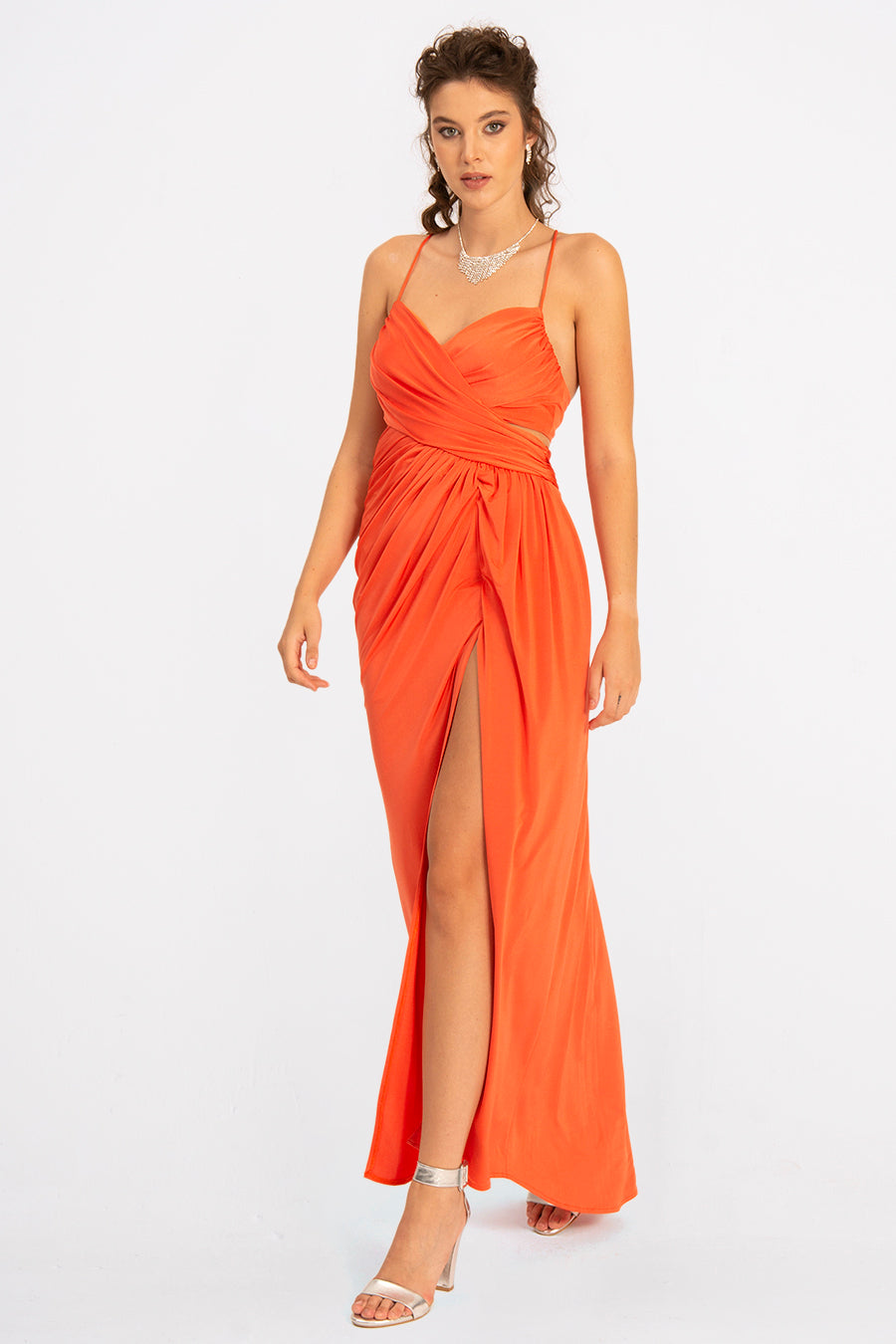 Make a statement in the Regalia—a sleeveless maxi evening dress that's equal parts elegance and edge. The high slit adds a flirty touch of drama, while the flowing silhouette keeps things effortlessly chic. Perfect for turning heads at galas, weddings, or any occasion where you want to feel absolutely stunning. Bare shoulders, maximum impact.