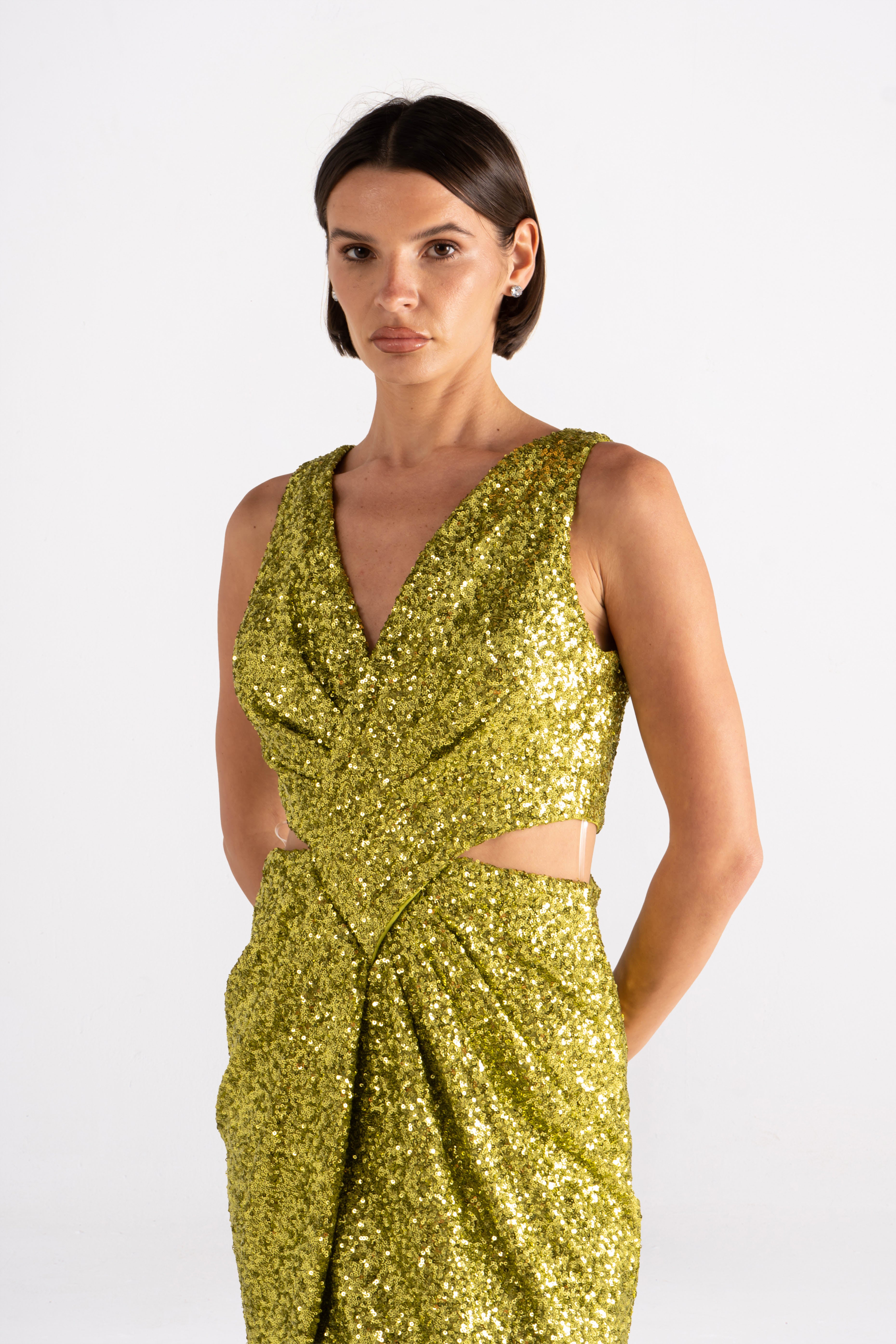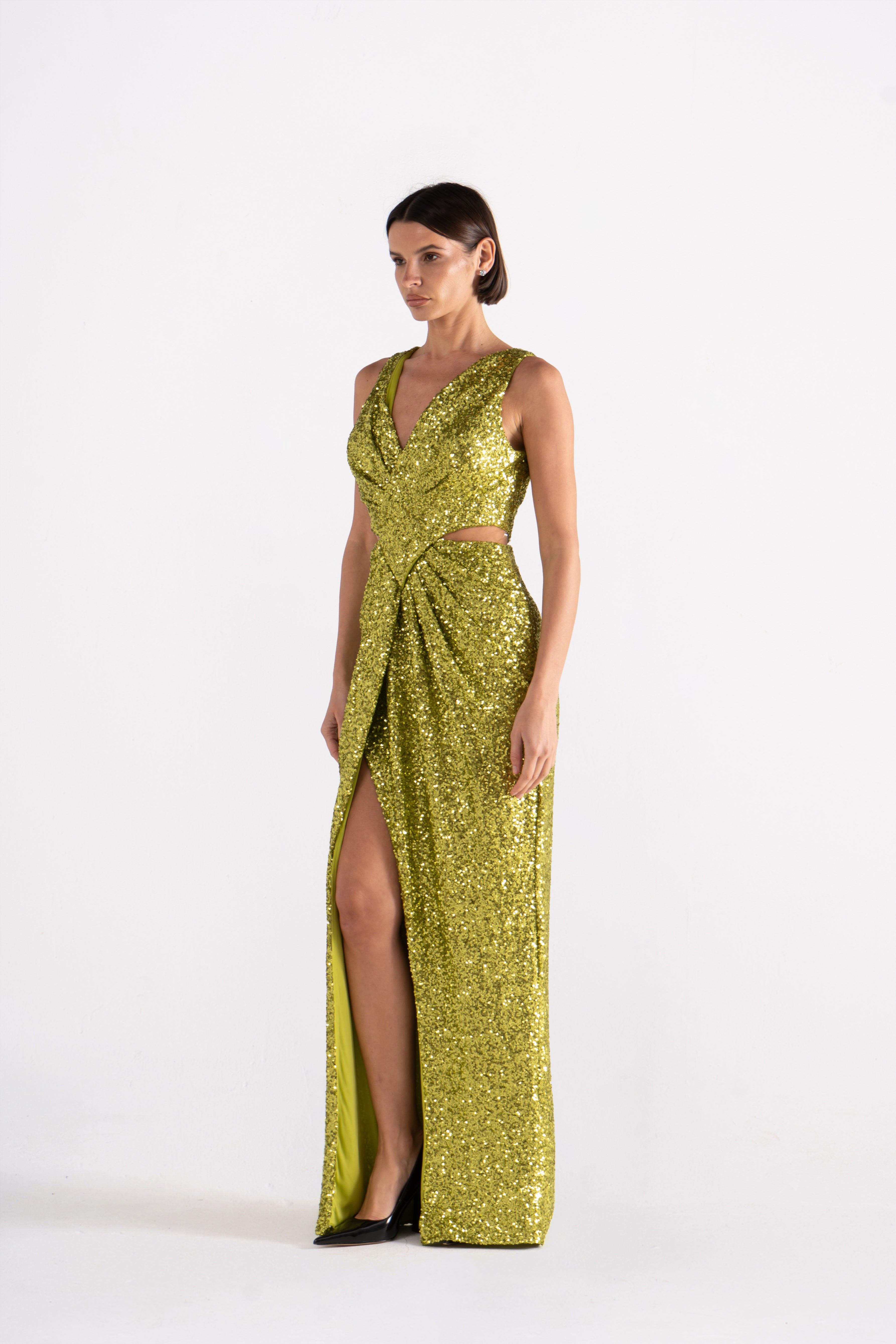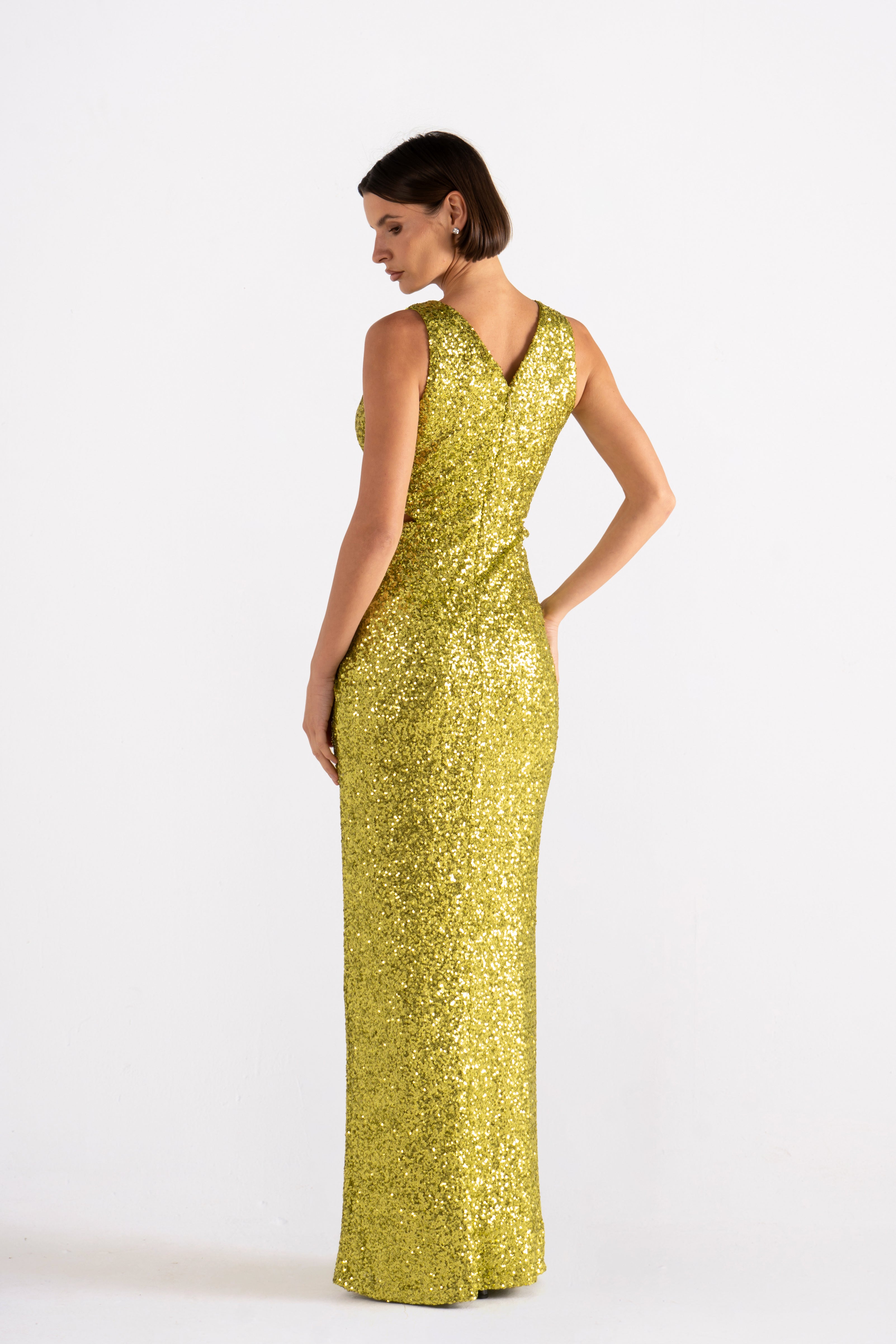 Introducing Vexoria—the dress that says "I'm here to turn heads." This stunning sleeveless maxi features intricate payet embellishments that catch the light with every move, paired with a daring high slit that lets you stride with confidence. Perfect for evening galas, celebrations, or any moment when you want to feel absolutely radiant. Elegance meets edge in this show-stopping piece.